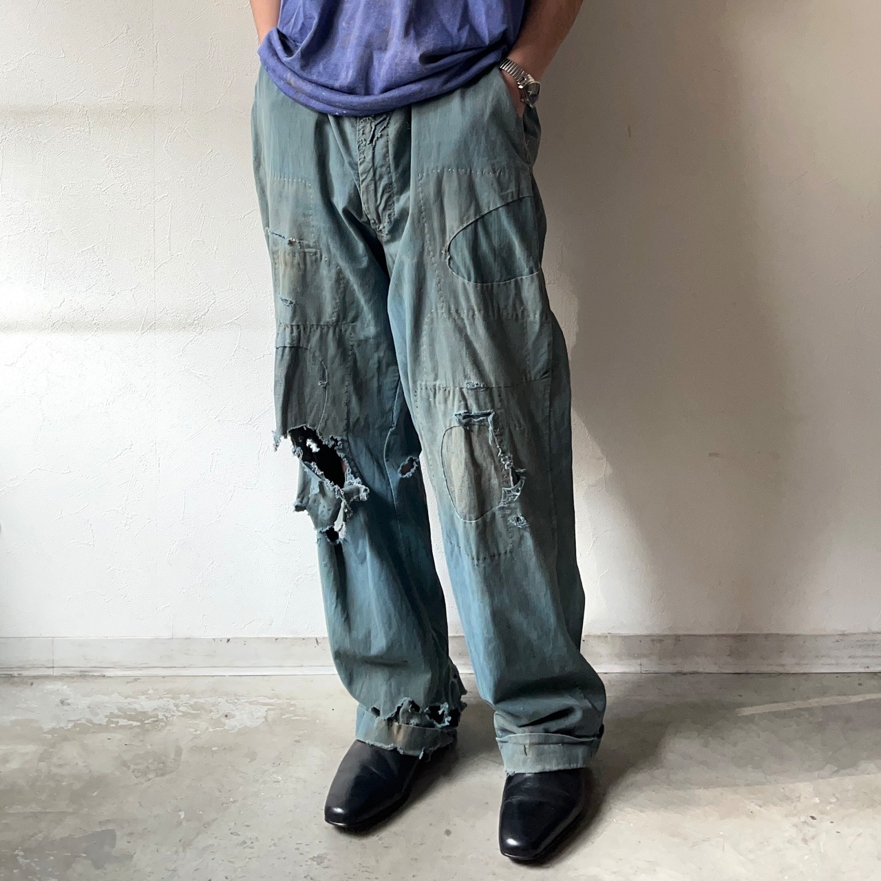 経年変化による風合いやダメージ、リペアが非常にクールな50〜60年代頃のパンツ。