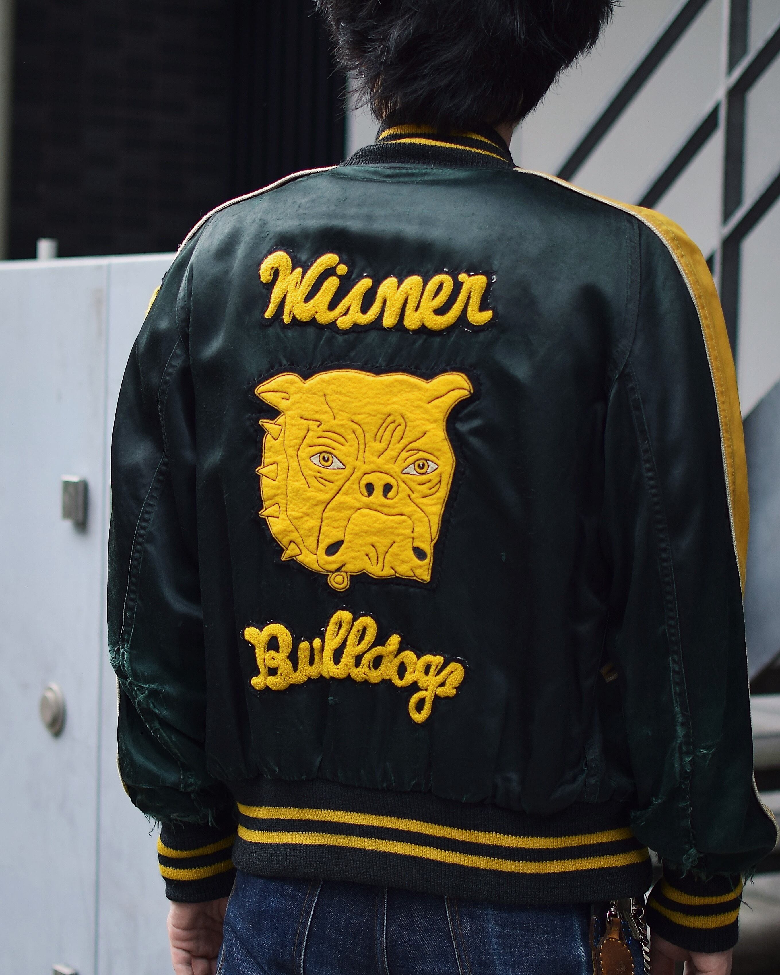 Vintage 50〜60's【HAUFF SPORTING GOODS CO.】"Wisner Bulldogs" Grunge Satin Jacket