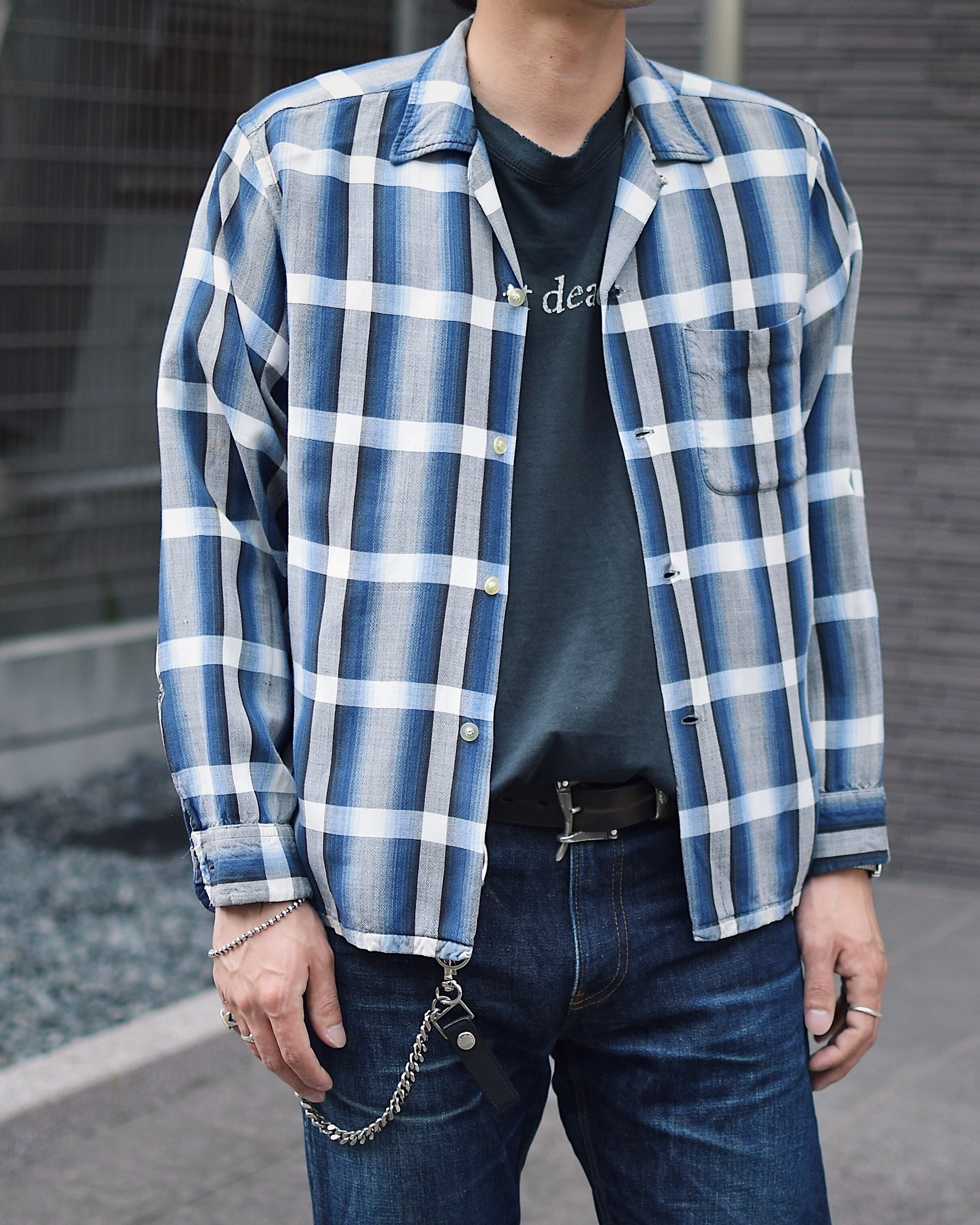 レーヨンならではの独特の光沢感やなめらかな素材感、とろみのある落ち感が魅力的な60年代のオンブレチェックシャツ。