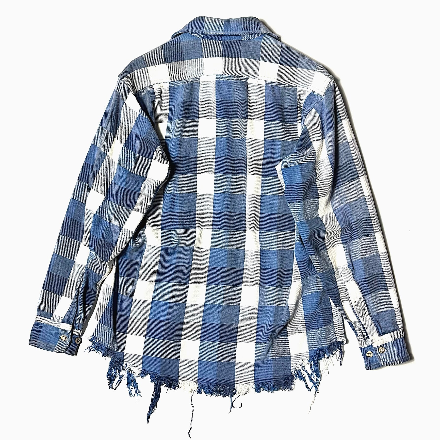 経年変化による風合いや裾のほつれが魅力的なグランジ感あふれるチェックシャツ。