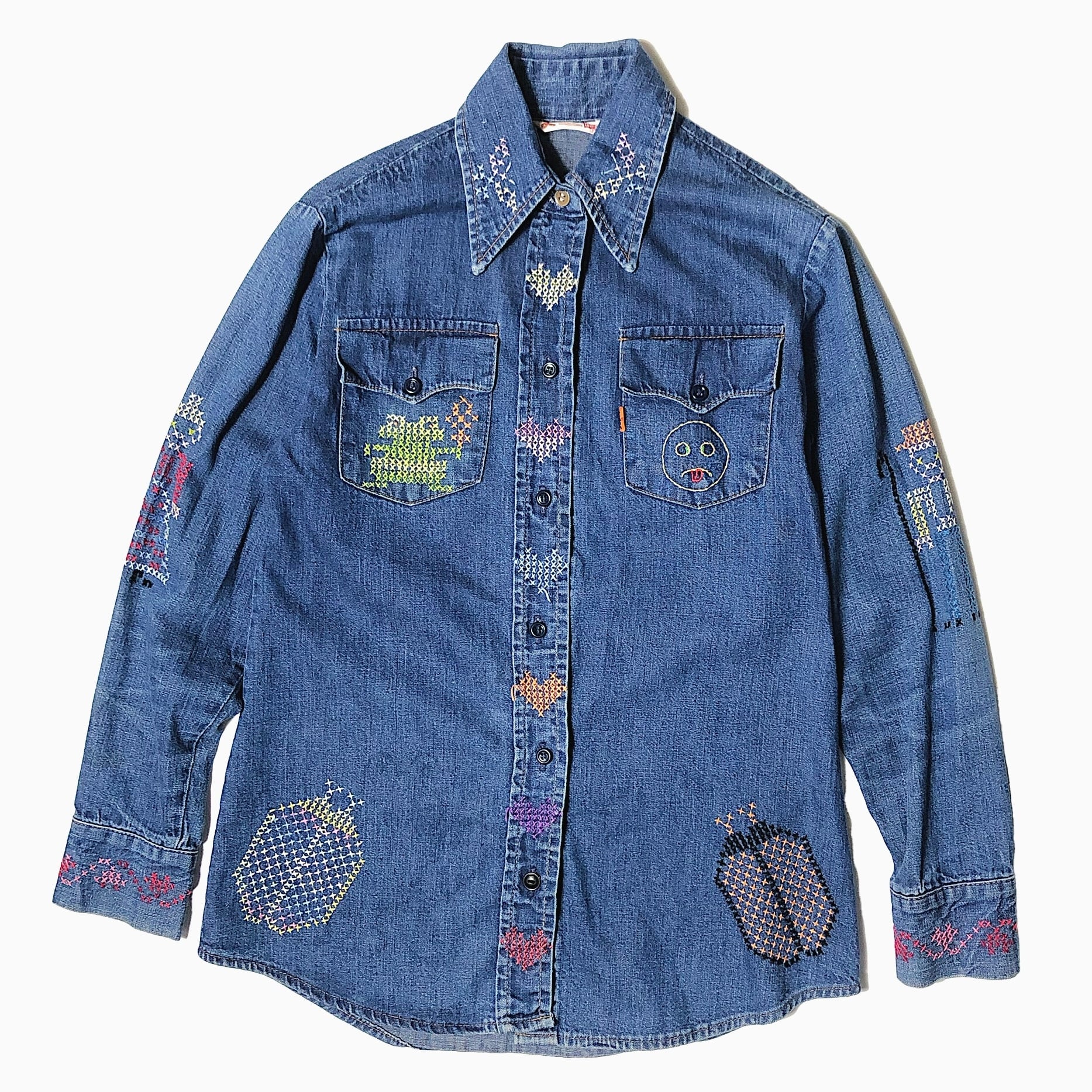 キャッチーなデザインの刺繡が一際目を惹く70年代のリーバイスのデニムシャツ。