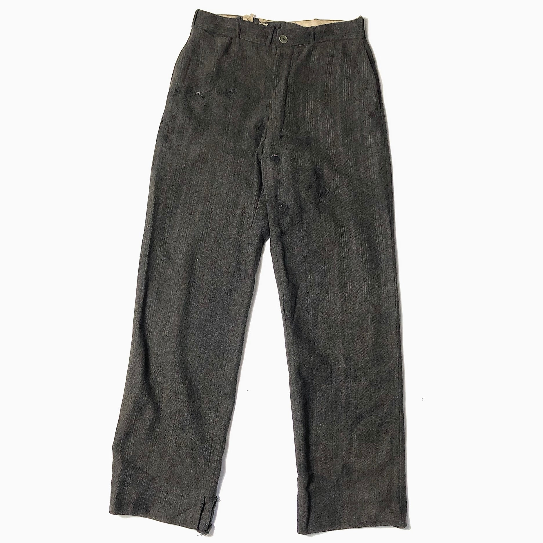 経年変化による風合いやダメージ、リペアとピンストライプ柄が非常にクールな50〜60年代頃のパンツ。