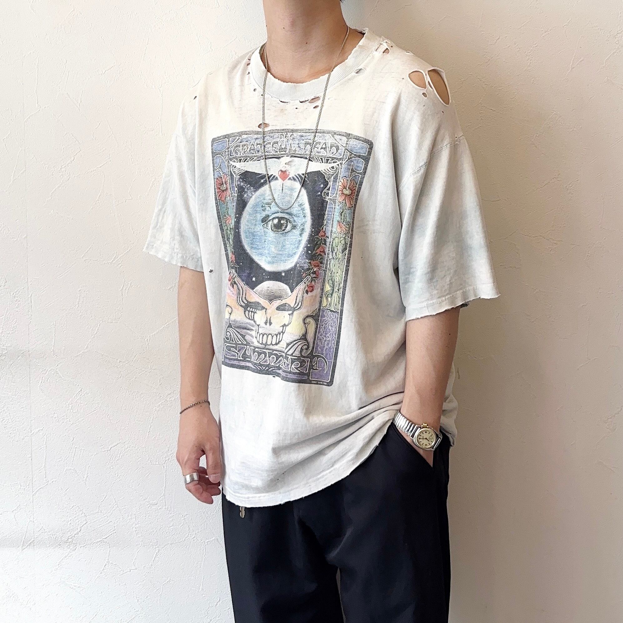 アートともとれる程のダメージや風合い、センスの良いクールなデザインが非常に魅力的な "グレイトフル・デッド" のTシャツ。