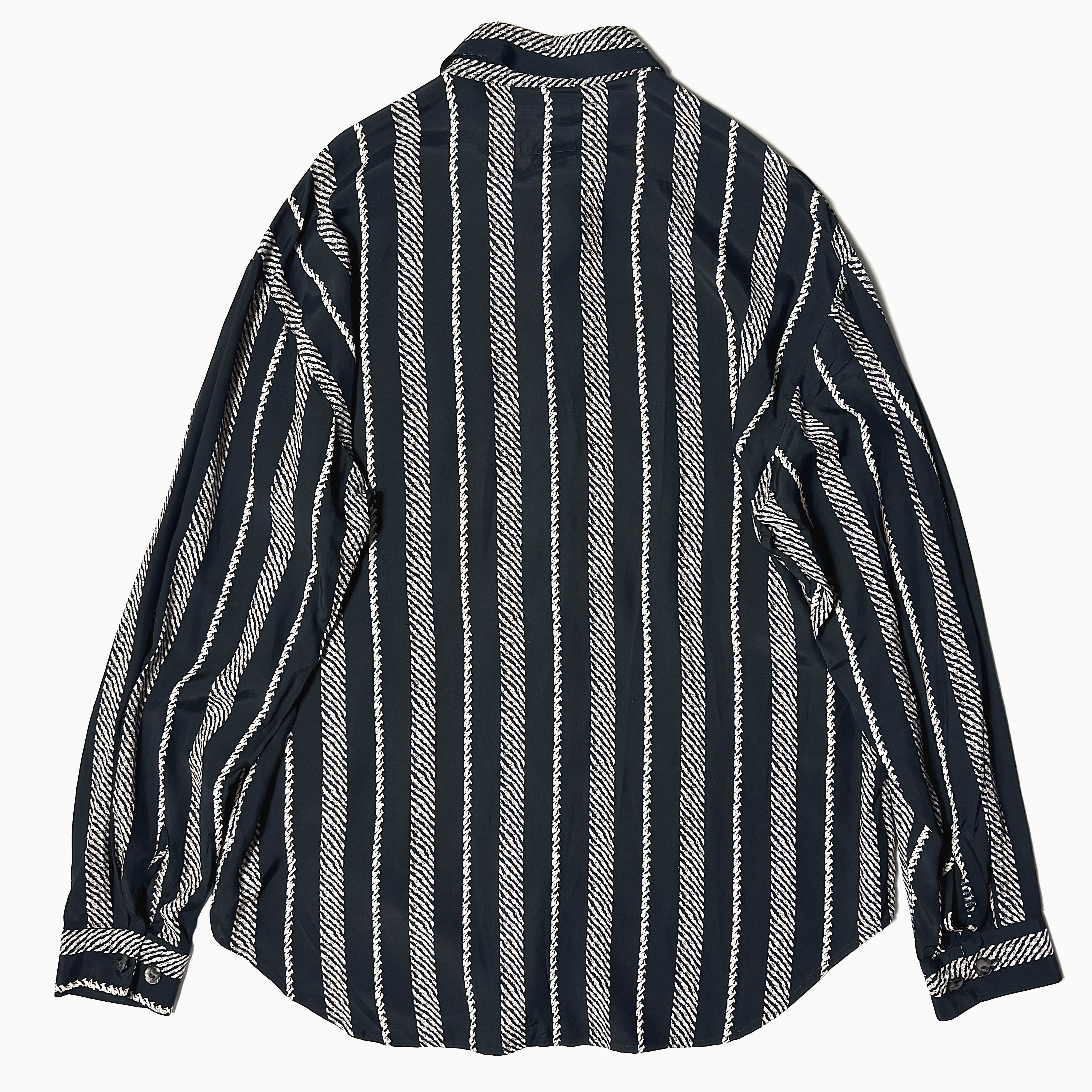 一際目を惹く柄が非常にクールなレーヨンシャツ。