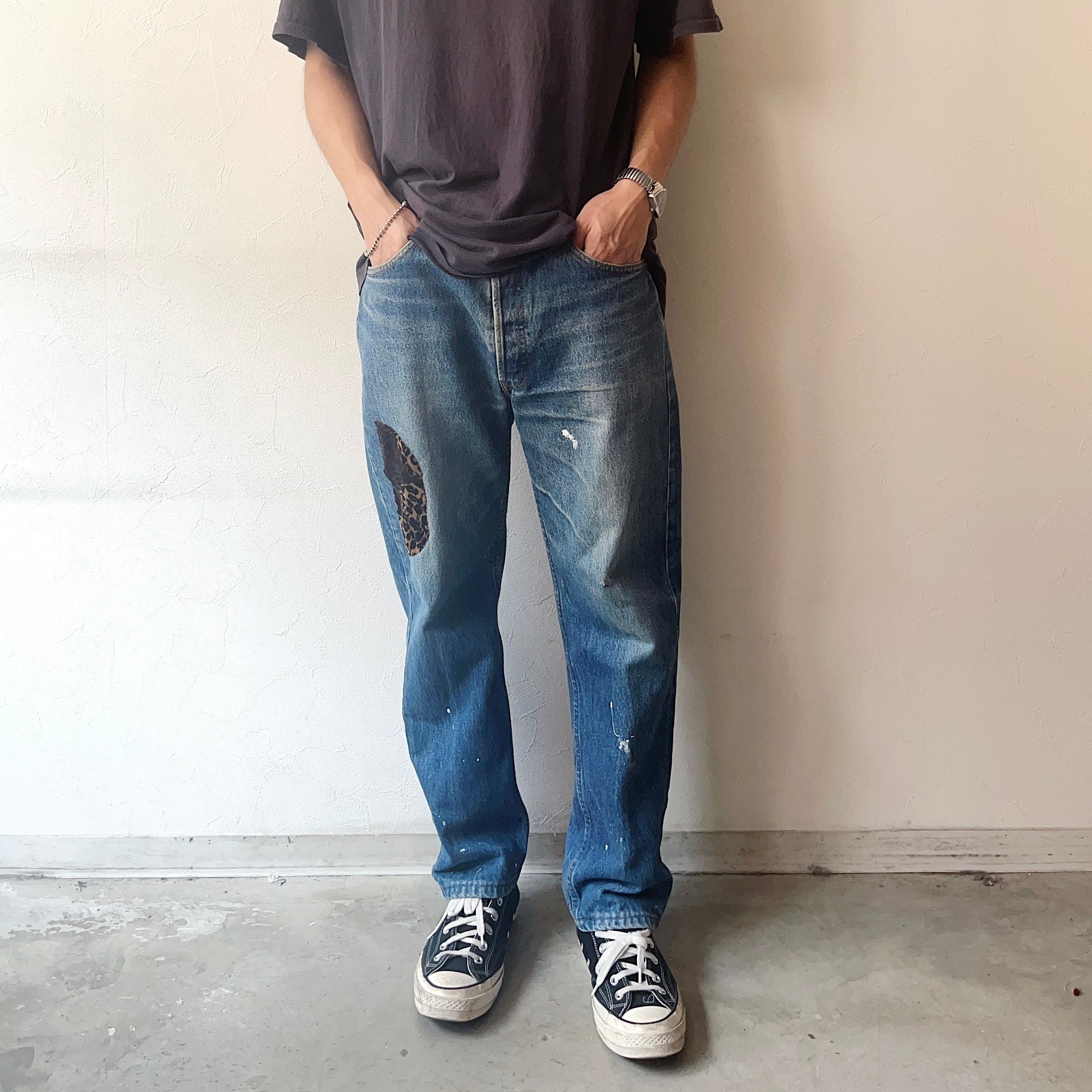 経年変化によるダメージや風合い、リペアが非常にクールなリーバイスの501デニムパンツ。