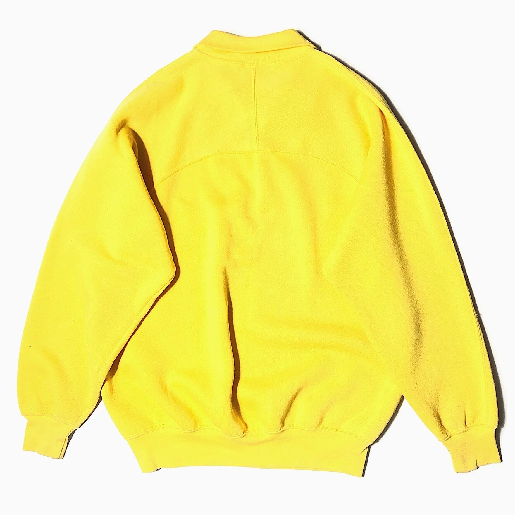 一際目を惹くキャッチーなデザインと発色の良いカラーが経年変化による風合いと相まって非常に魅力的なハーフジップスウェット。