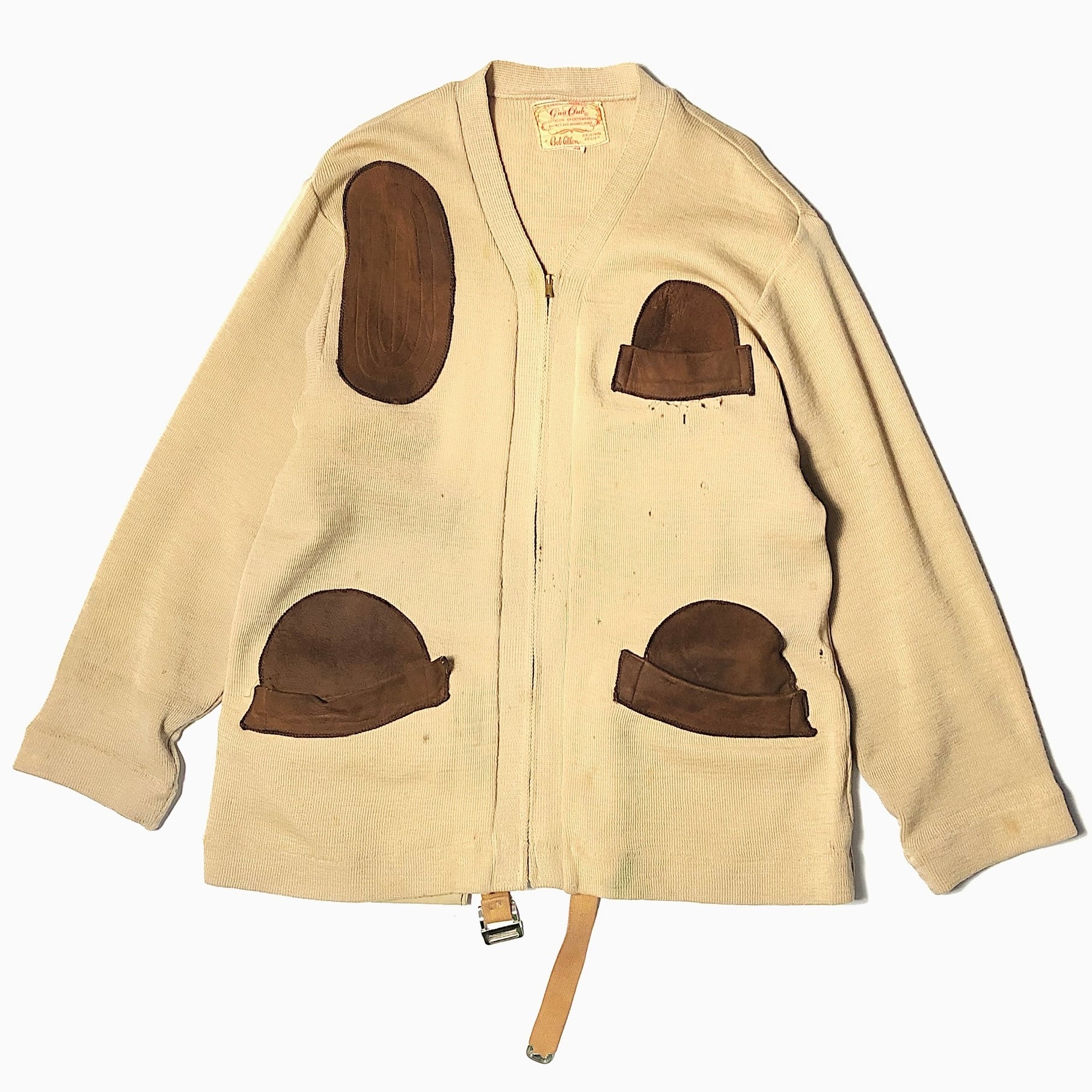 特徴的なディティールや年代ならではの風合いが非常にクールなジップアップのハンティングカーディガン。