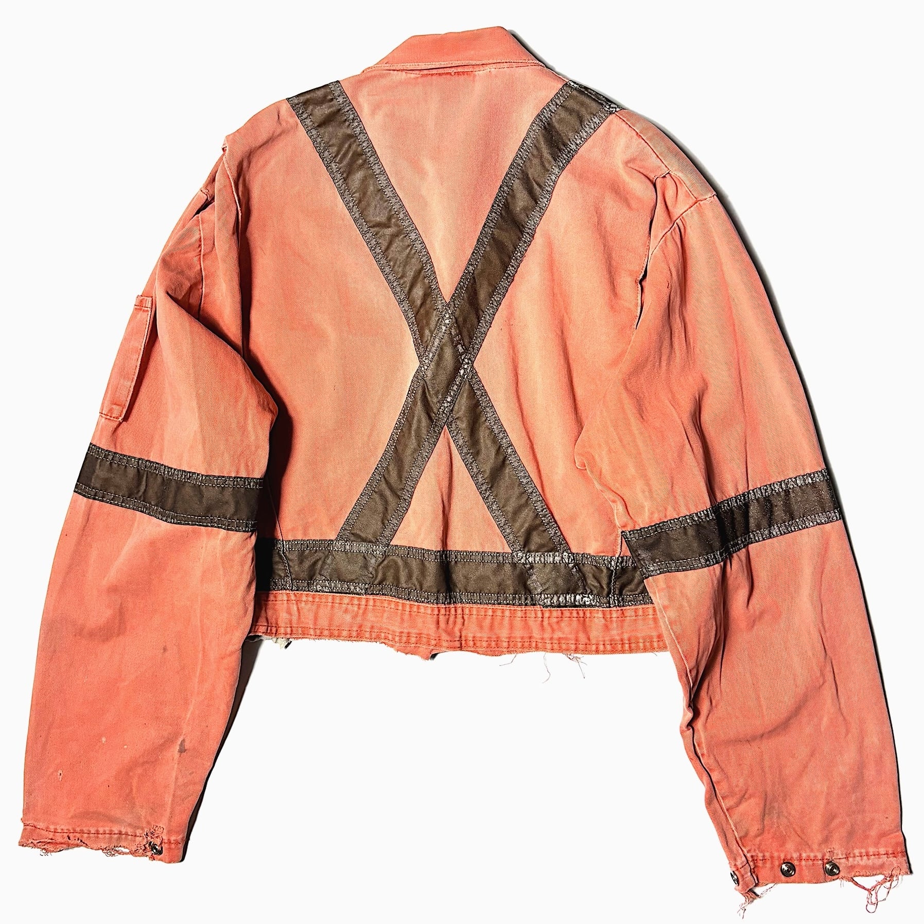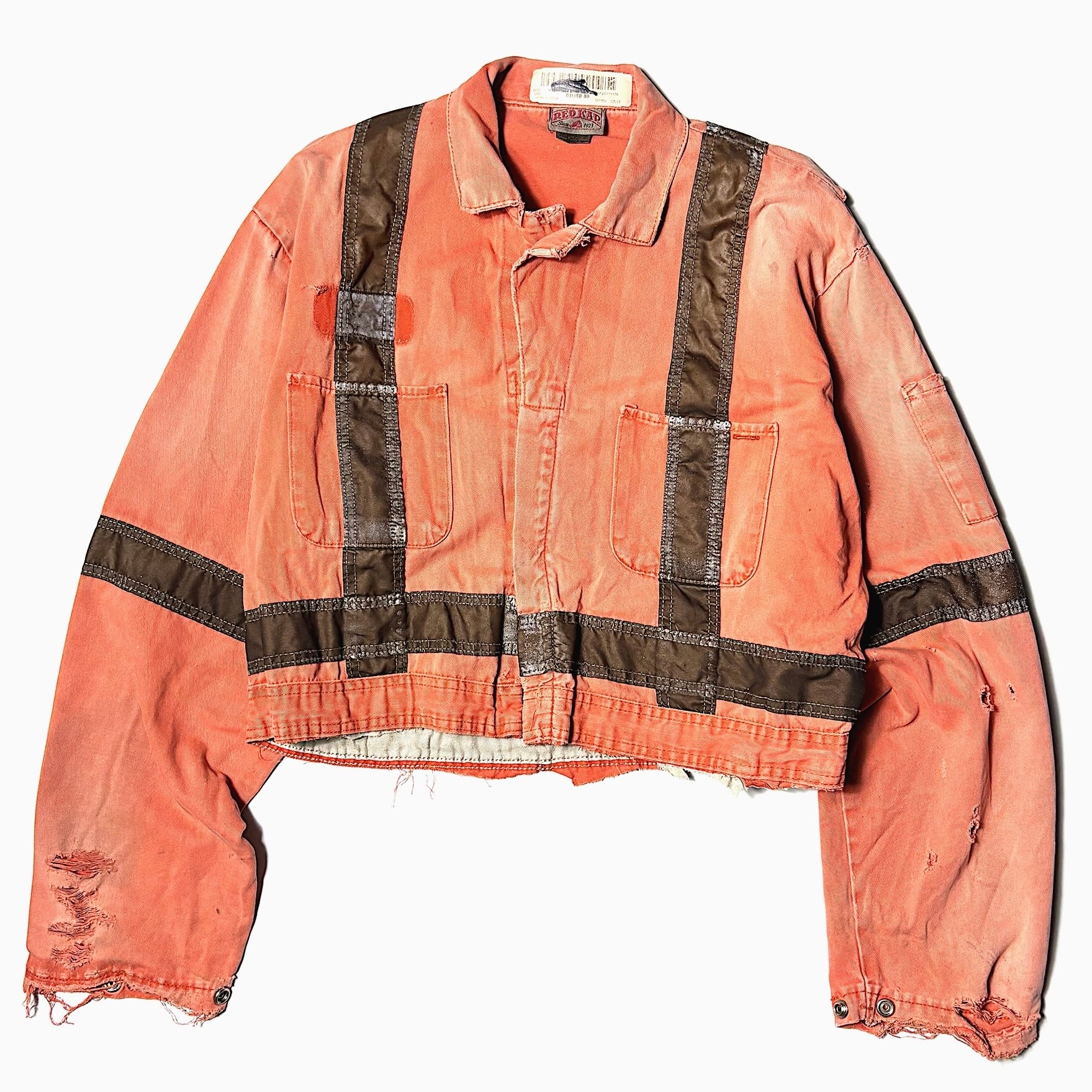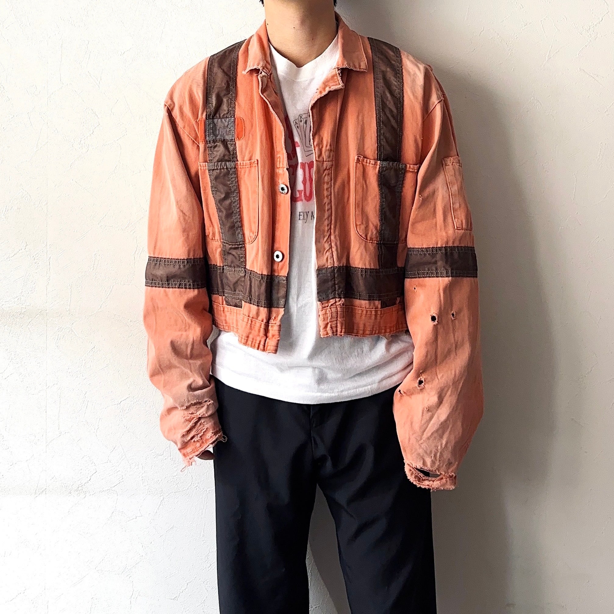 経年変化によるダメージやカットオフされた裾、フェードがかったカラーが圧倒的な存在感を放つ90年代頃のワークジャケット。
