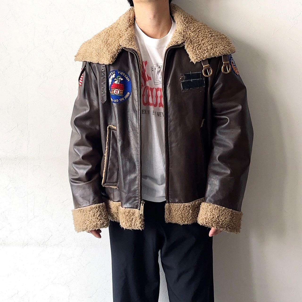 一際目を惹くバックのペイントが圧倒的な存在感を放つ60~70年代のムートンジャケット。