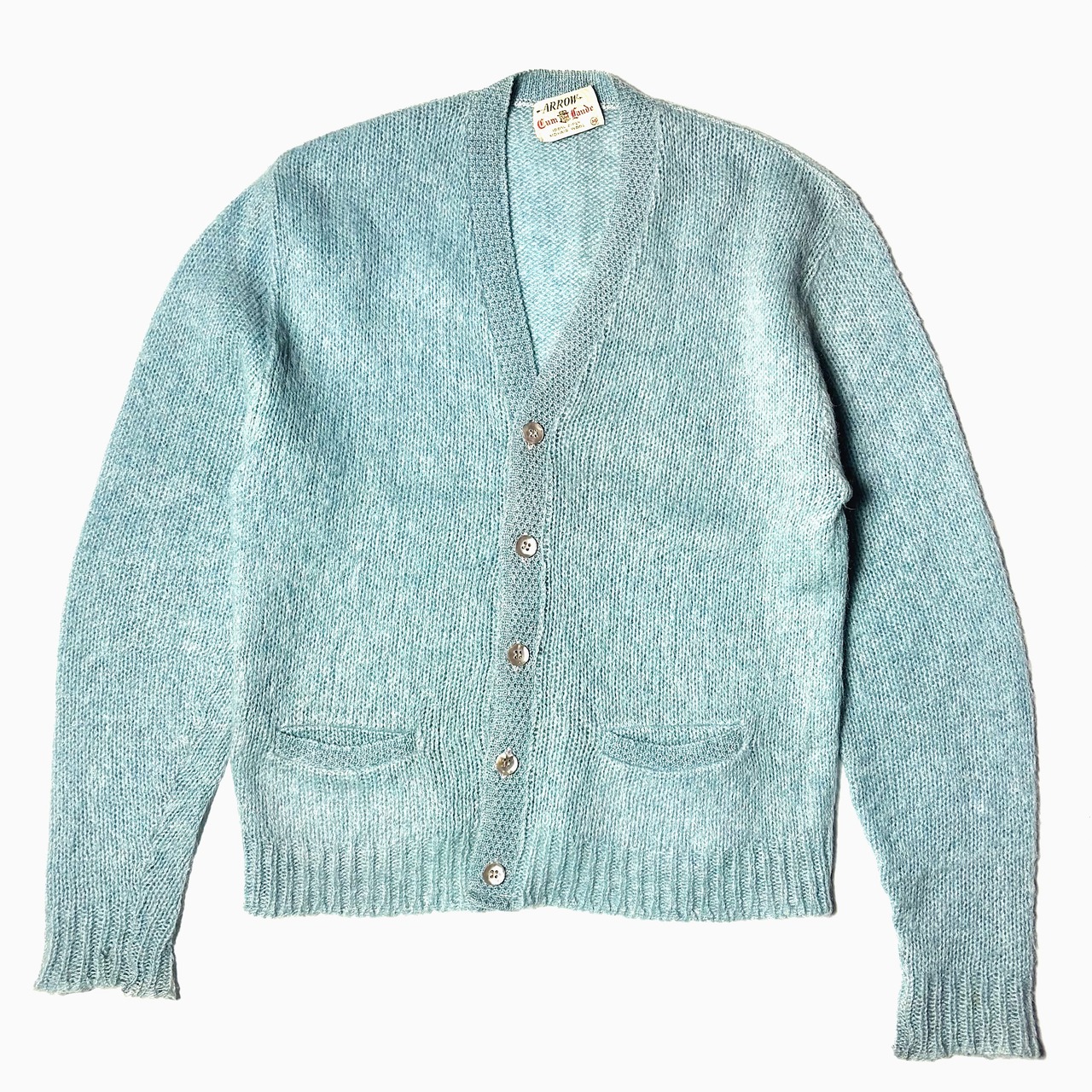 モヘアならではの高級感漂う風合いや経年変化による風合い、一際目を惹く爽やかなカラーが抜群の雰囲気を放つ60年代のモヘアカーディガン。