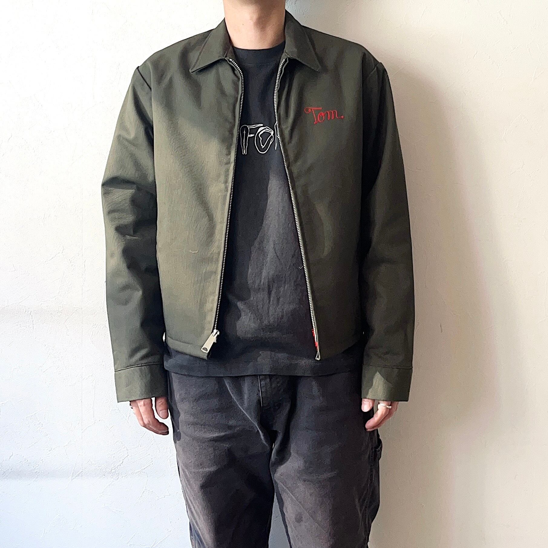 フロントのチェーンステッチとバックのフロッキープリントが非常にクールなジャケット。