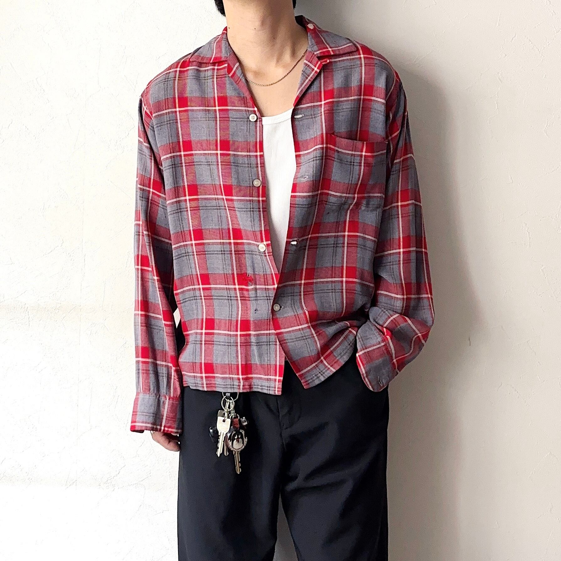 Vintage 50's【Wesley】Open Collar Rayon Check Shirt