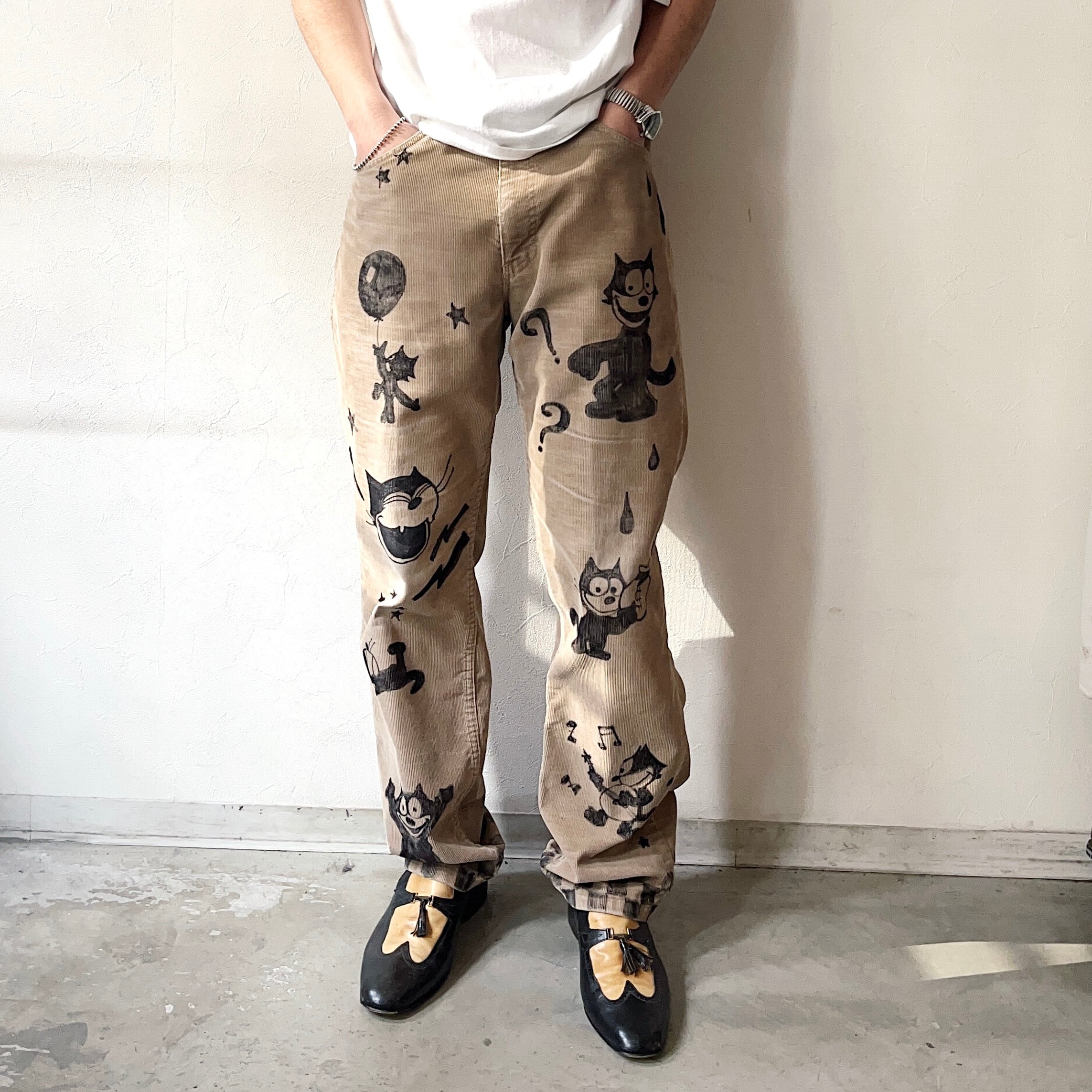 Vintage 80's【Levi's】519 "Felix the Cat" Painted Corduroy Pants
