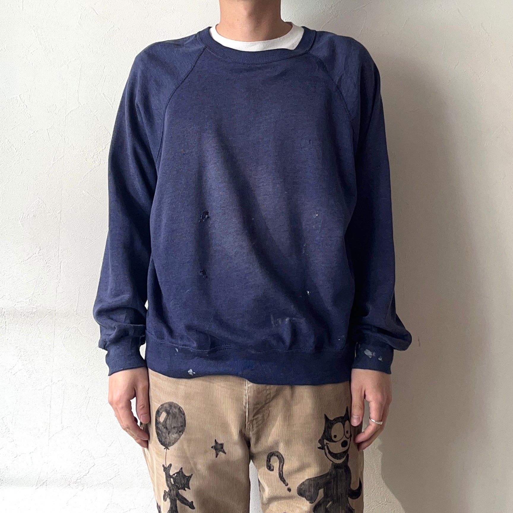 経年変化による風合いやダメージ、フェードがかったカラーやペンキ跡が非常にクールなラグランスウェット。