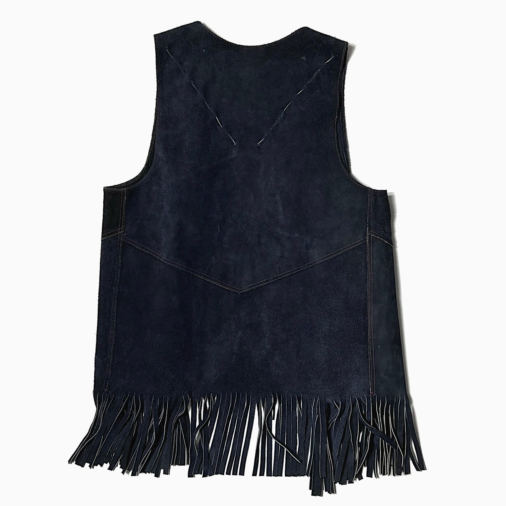 一際目を惹くフリンジや装飾が非常に魅力的なレザーベスト。