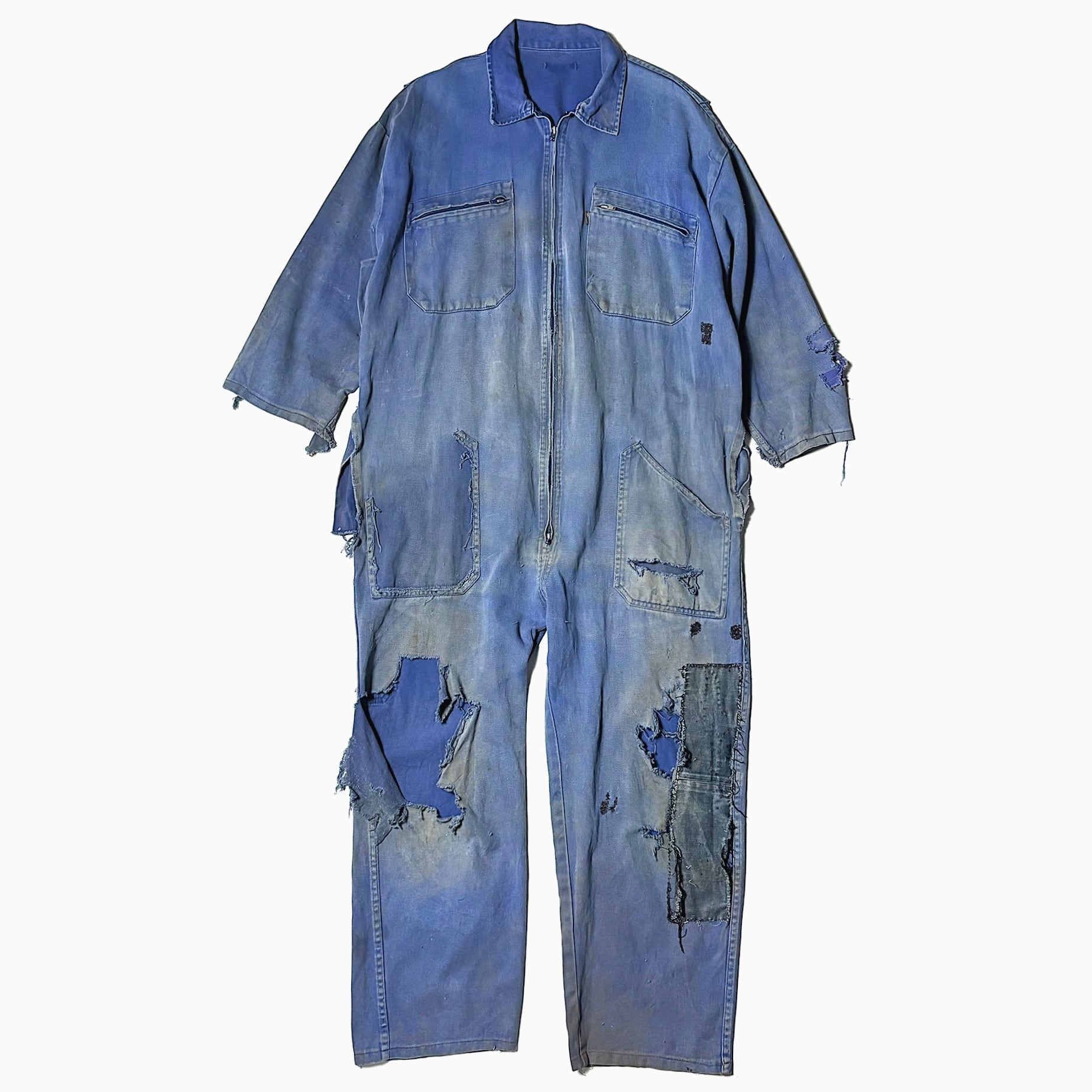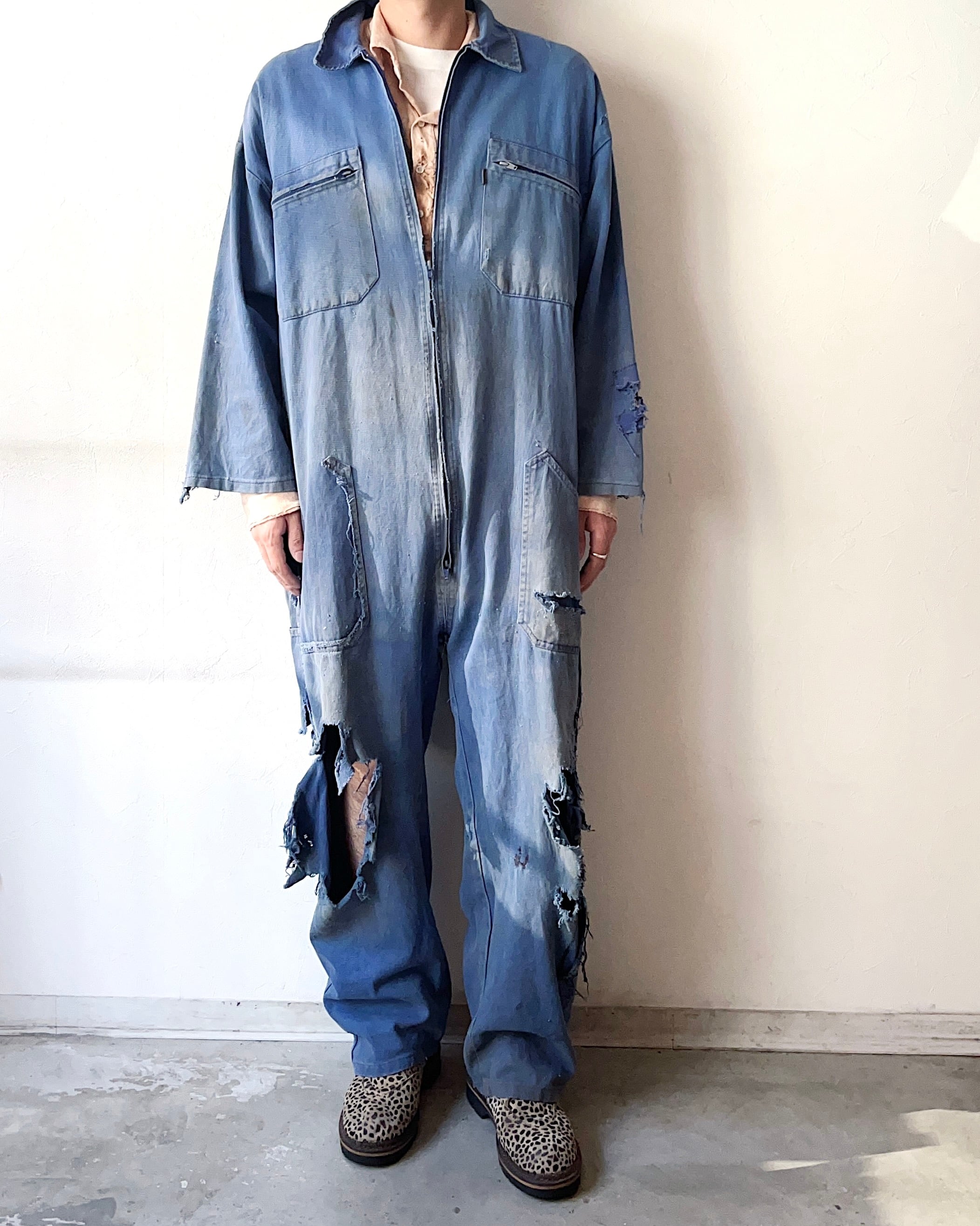 アートともとれる程のダメージや風合い、リペアやフェードがかったカラーが圧倒的な存在感を放つ60〜70年代頃のジャンプスーツ。