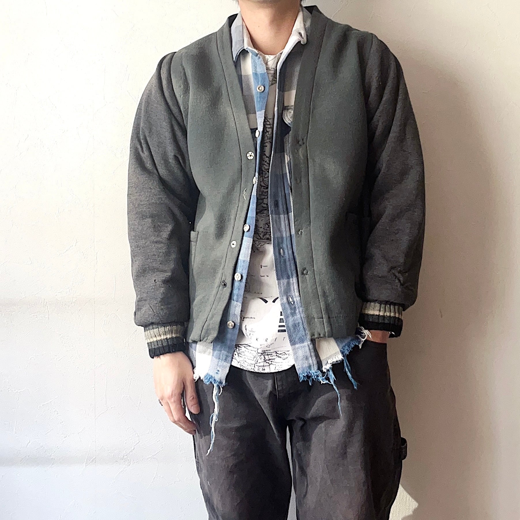 経年変化による風合いや落ち着きのあるカラーリングが非常にクールなスウェットカーディガン。
