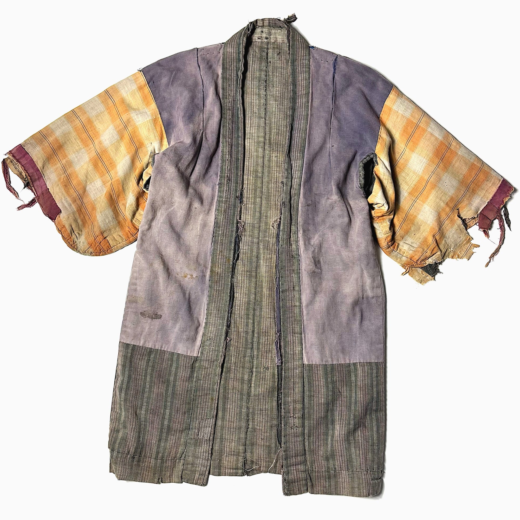 アートともとれる程のダメージや風合い、フェードがかったカラーが圧倒的な存在感を放つ着物シャツ。