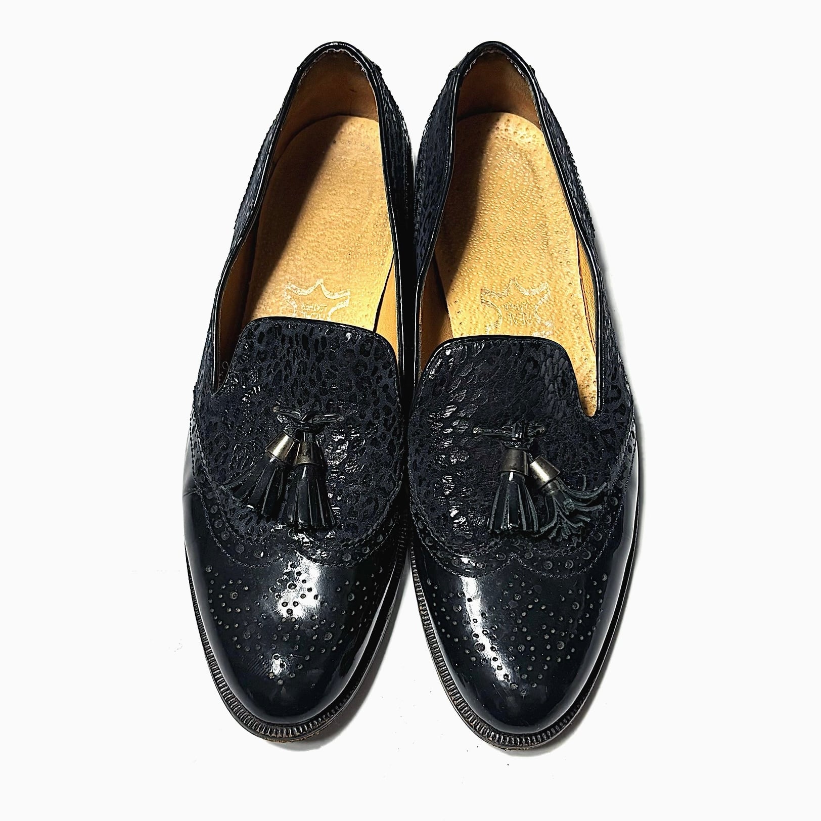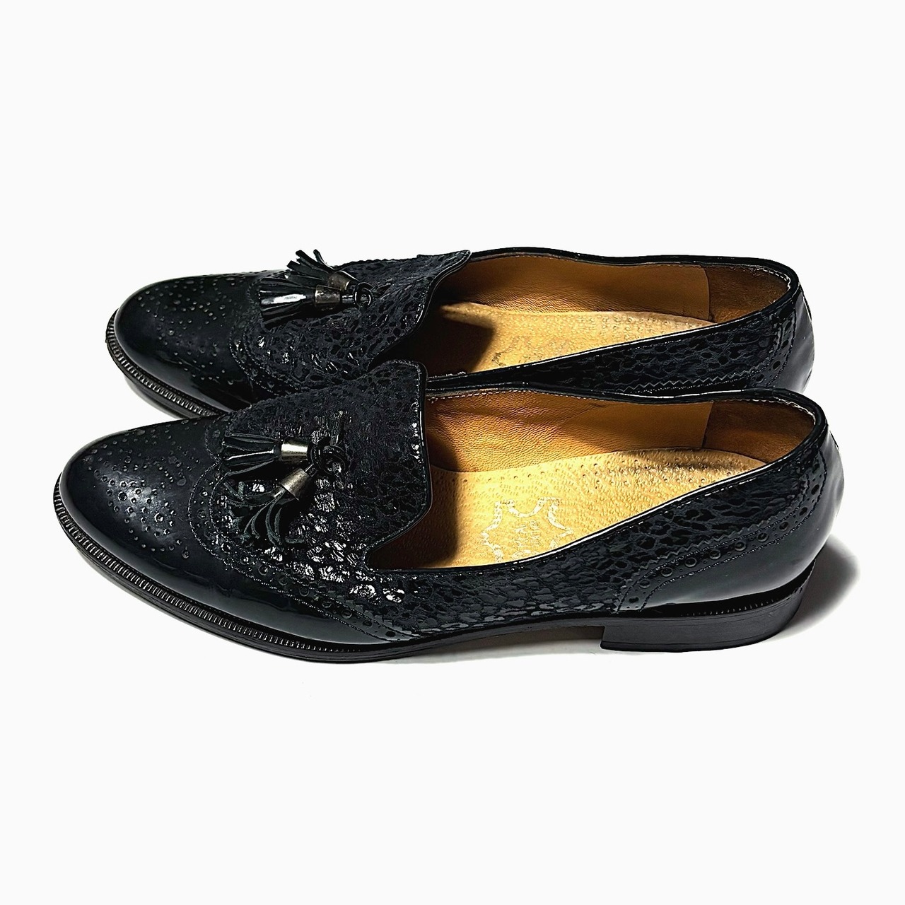 さりげないレオパード柄が非常にクールなタッセルシューズ。