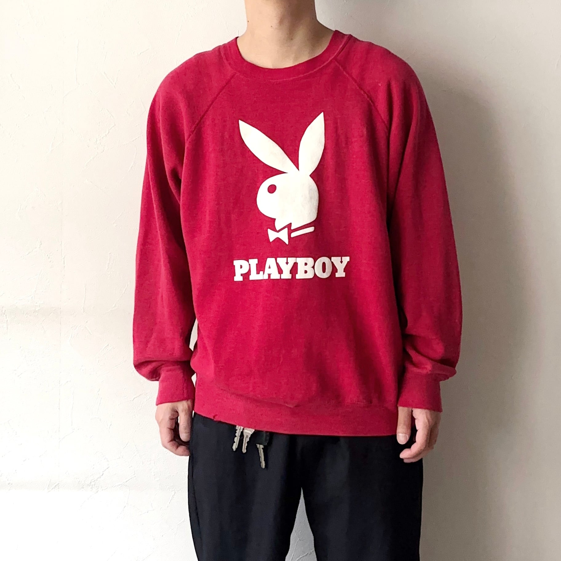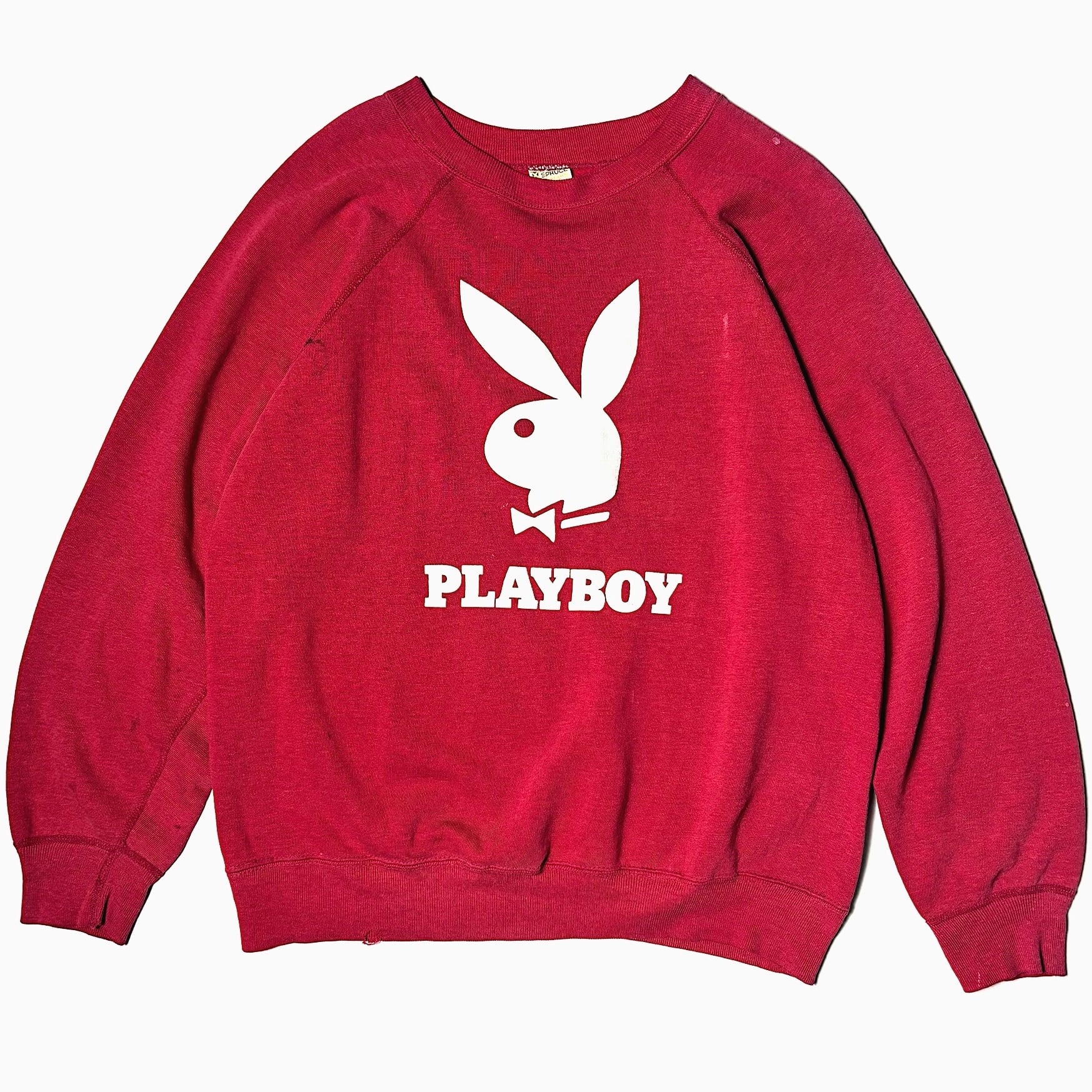 プレイボーイのキャッチーなデザインがリプリントされた70年代のラグランスウェット。