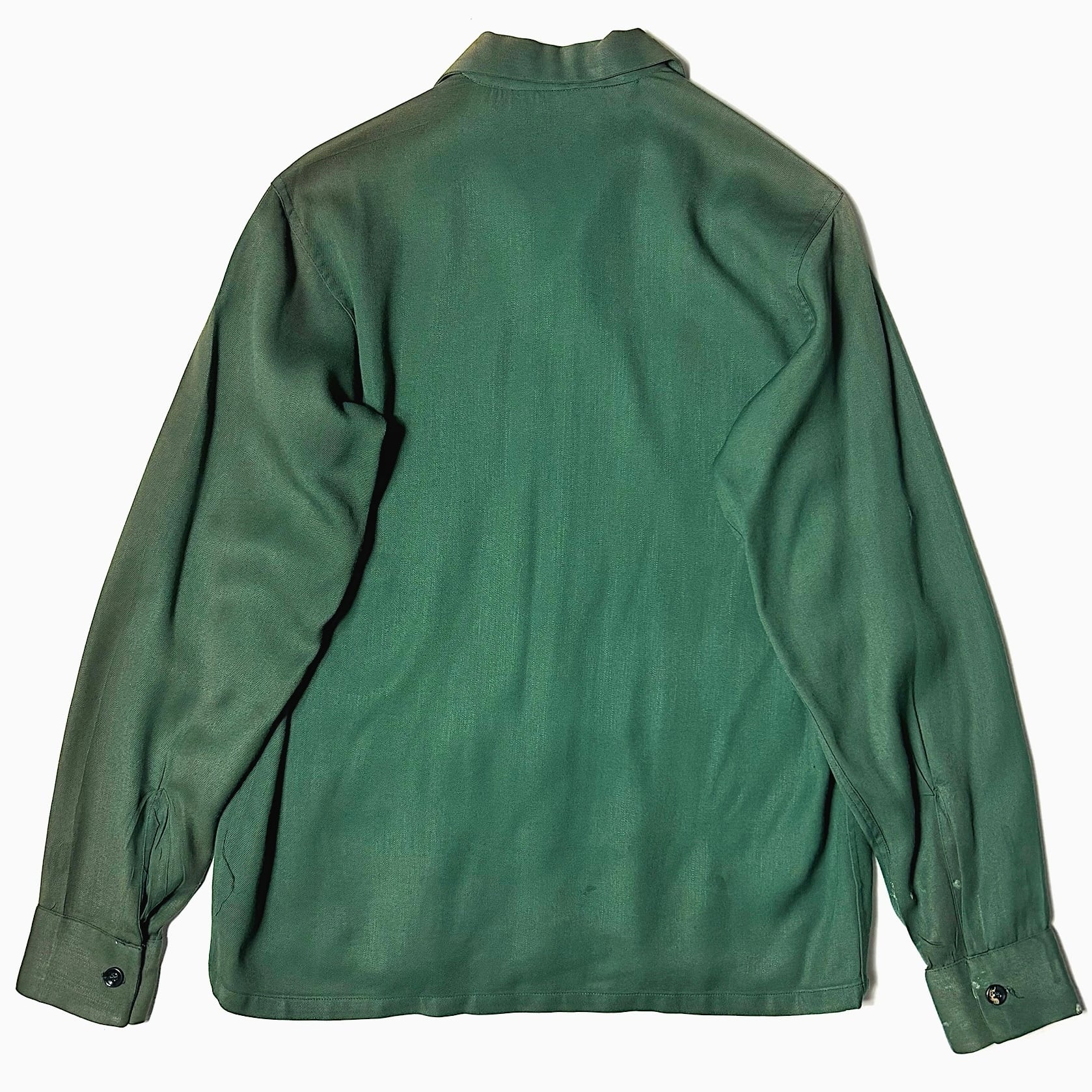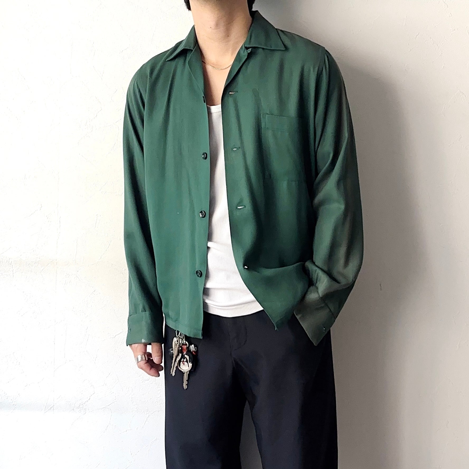 レーヨンならではの独特の光沢感やなめらかな素材感、とろみのある落ち感が魅力的な50年代のオープンカラーシャツ。