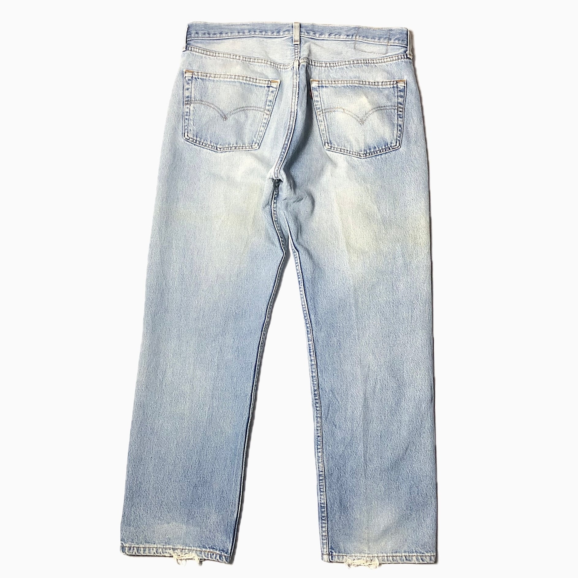 経年変化によるダメージや風合いが非常にクールなリーバイスの501デニムパンツ。