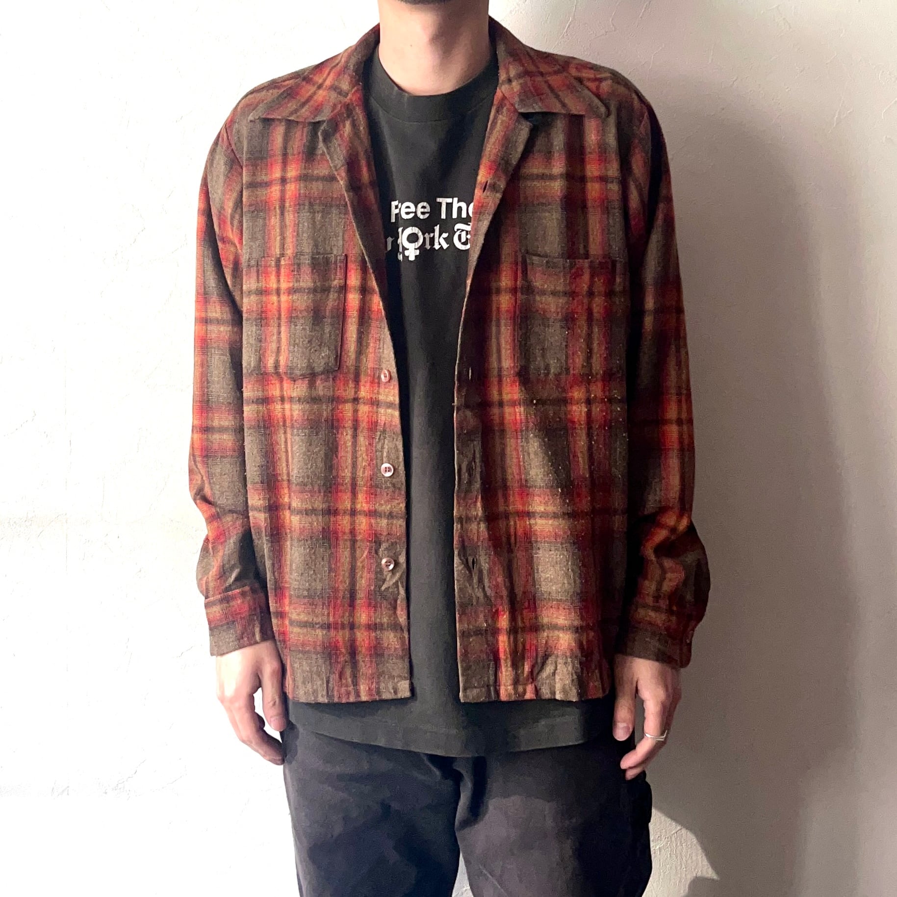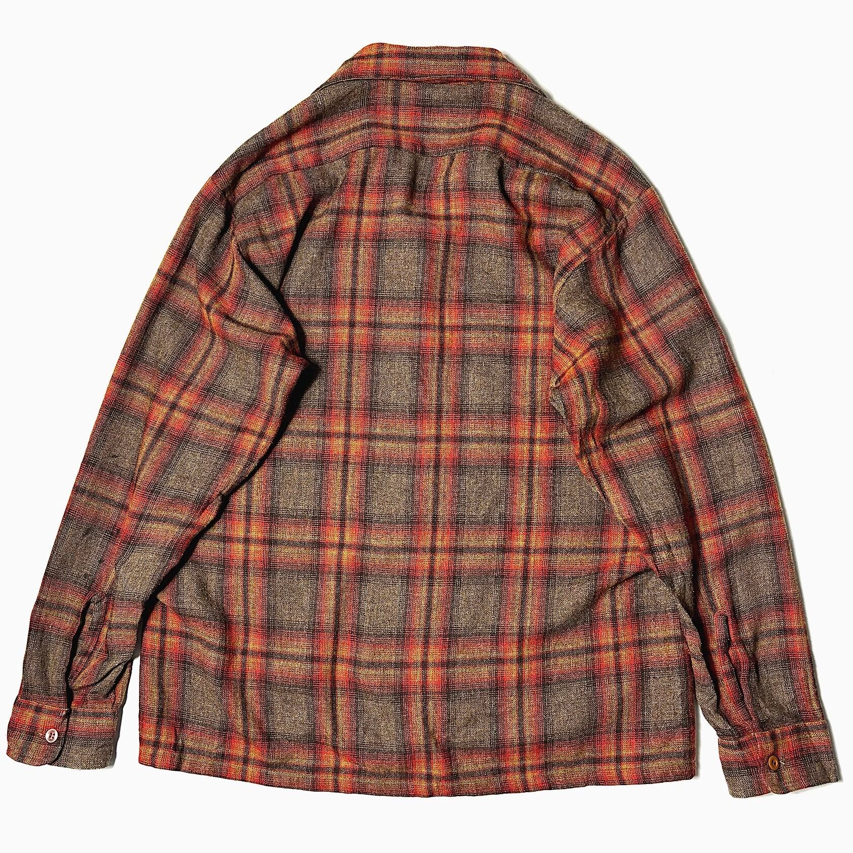 Vintage 60~70's【Sears】Open Collar Wool Check Shirt