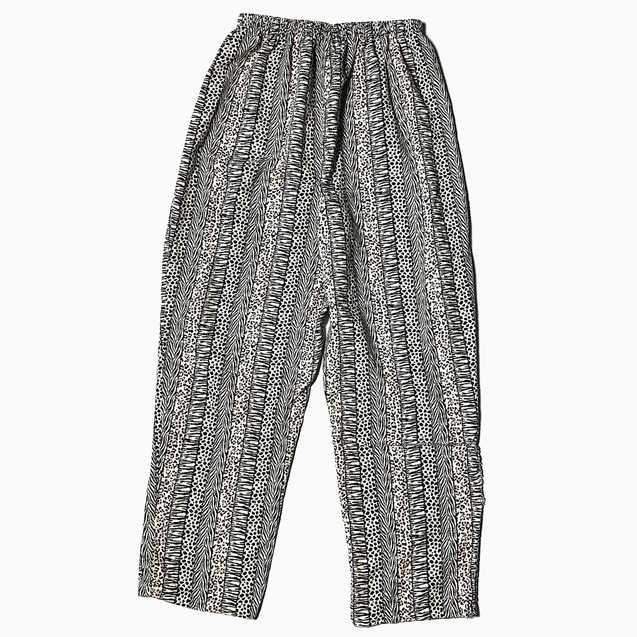 圧倒的な存在感を放つレオパード柄と経年変化による風合いやダメージ、リペアが雰囲気抜群のパジャマパンツ。