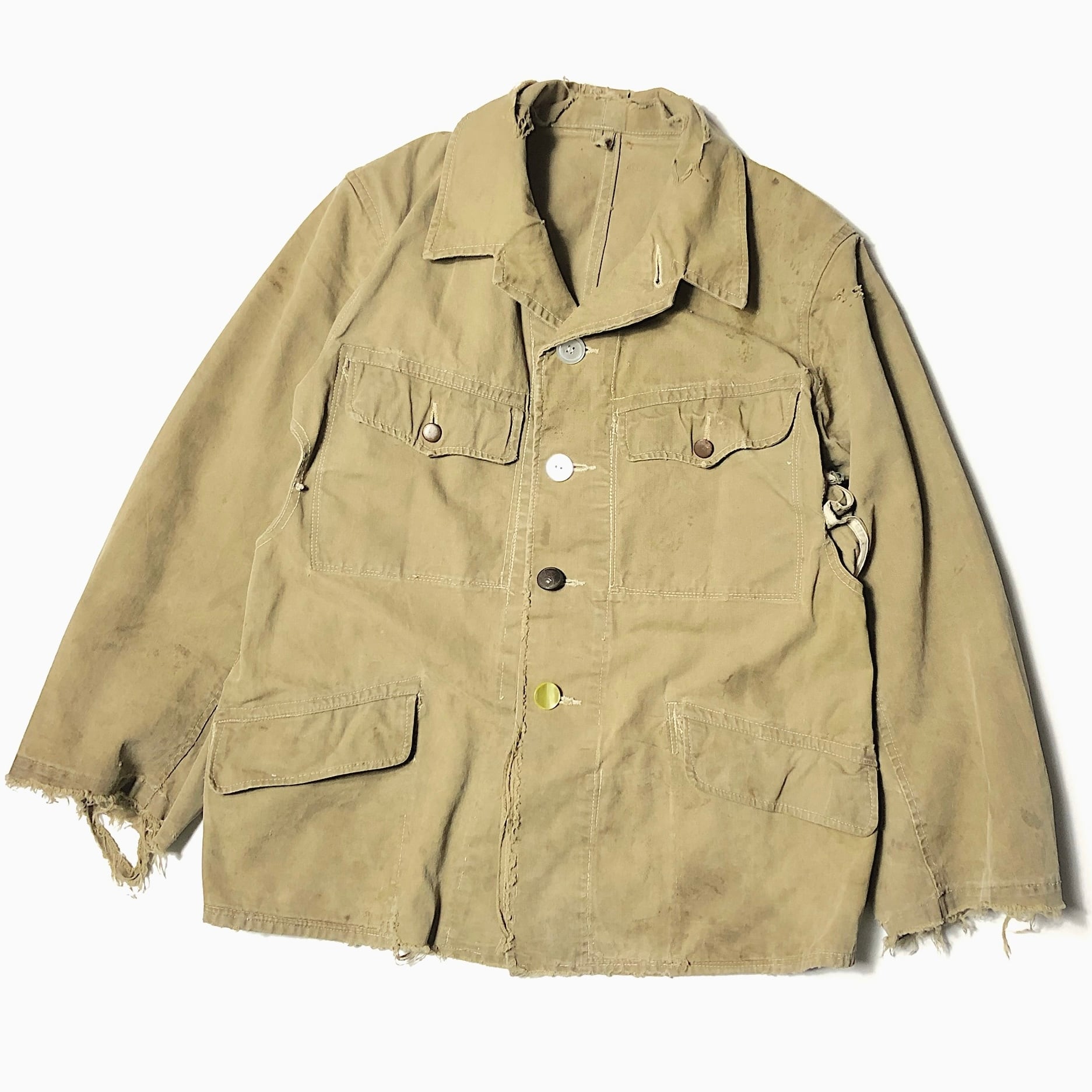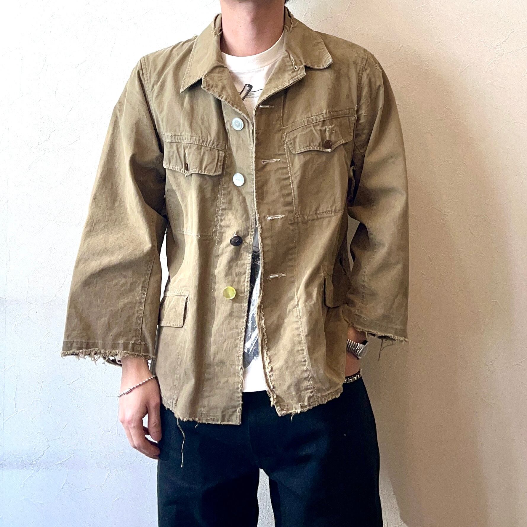 重厚感ある風合いやアートともとれる程のダメージが圧倒的な存在感を放つ40年代頃のジャケット。