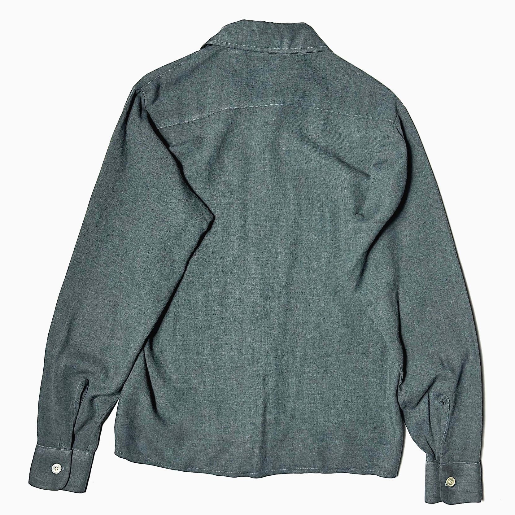 レーヨンならではの独特の光沢感やなめらかな素材感、とろみのある落ち感が魅力的な60~70年代頃のシャツ。