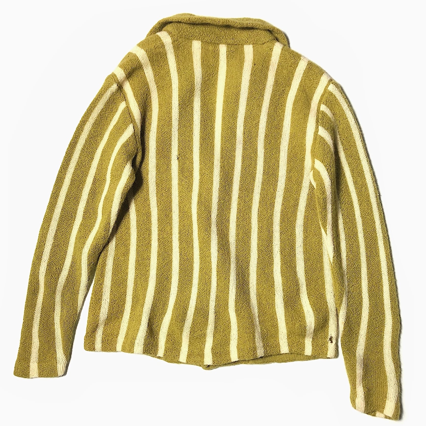 雰囲気抜群のカラーやデザイン、経年変化による風合いやダメージが非常にクールなカーディガン。