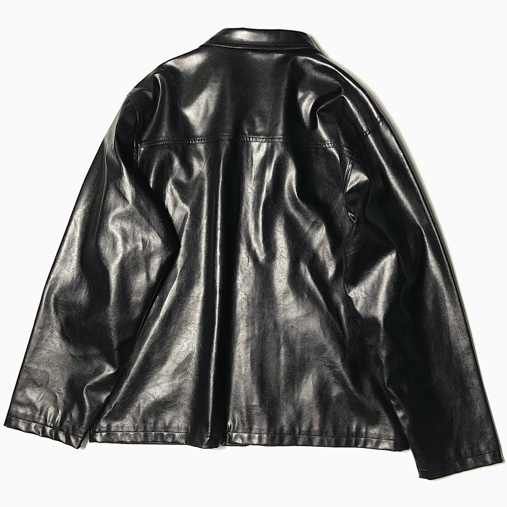 重厚感ある風合いやレオパード柄の裏地が圧倒的な存在感を放つフェイクレザージャケット。