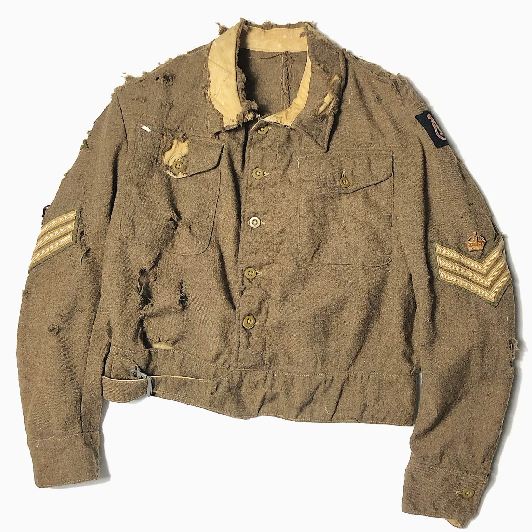 経年変化による風合いやダメージが抜群の雰囲気を放つ、40年代イギリス軍のバトルドレスジャケット。