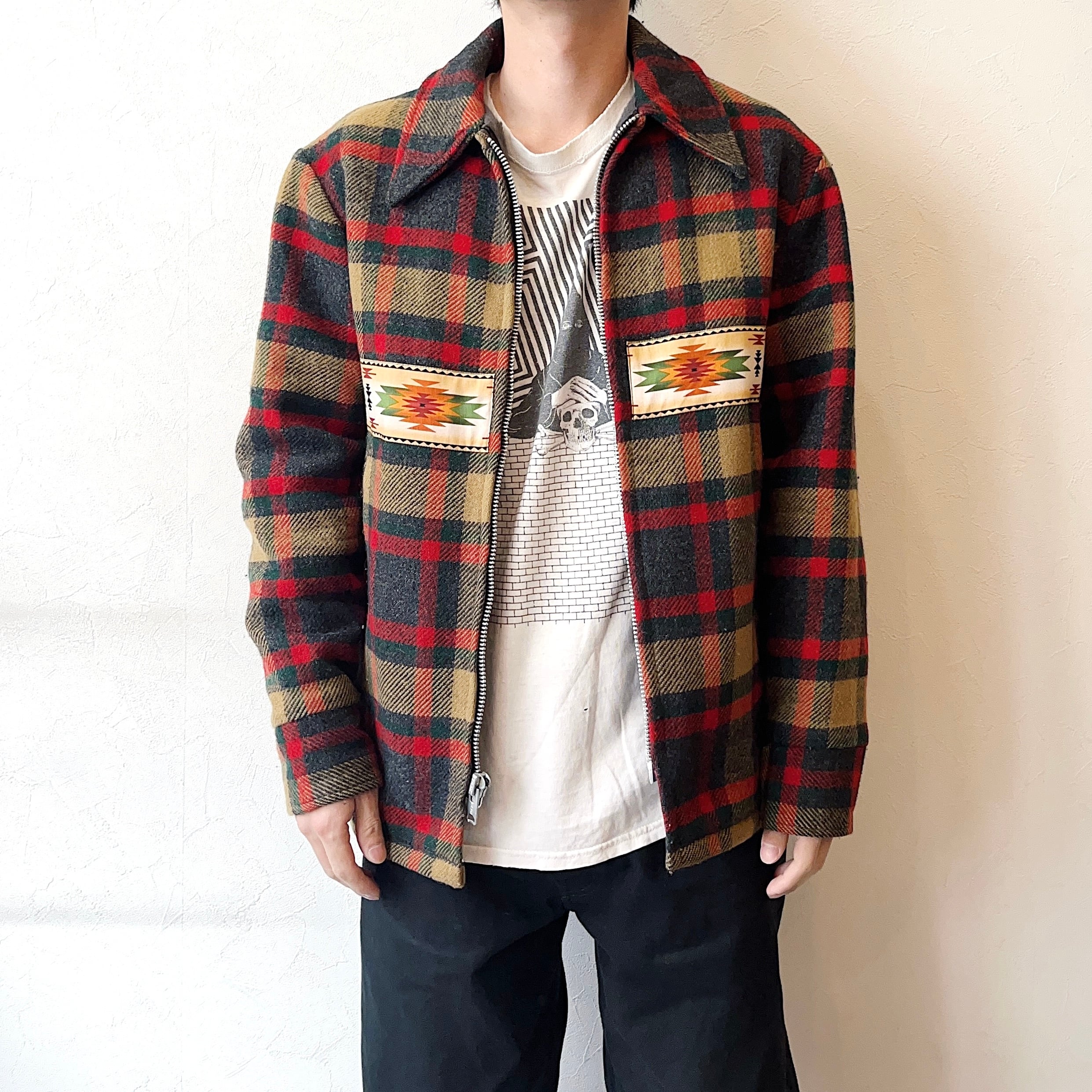 一際目を惹くクールなネイティブ柄や重厚感のある生地が抜群の雰囲気を放つ70年代頃のウールジャケット。