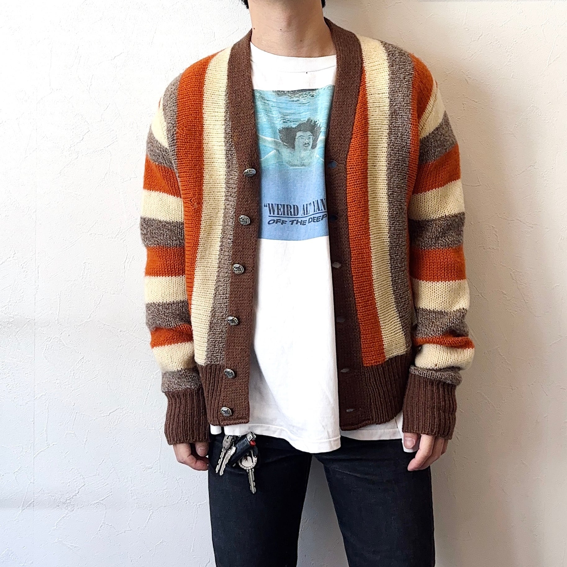 Vintage 60〜70's Grunge Striped Knit Cardigan