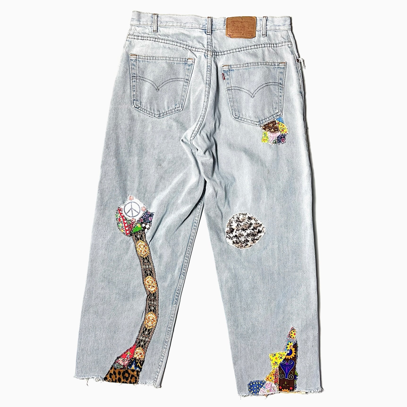 経年変化によるダメージやリペアが非常にクールなリーバイスのデニムパンツ。