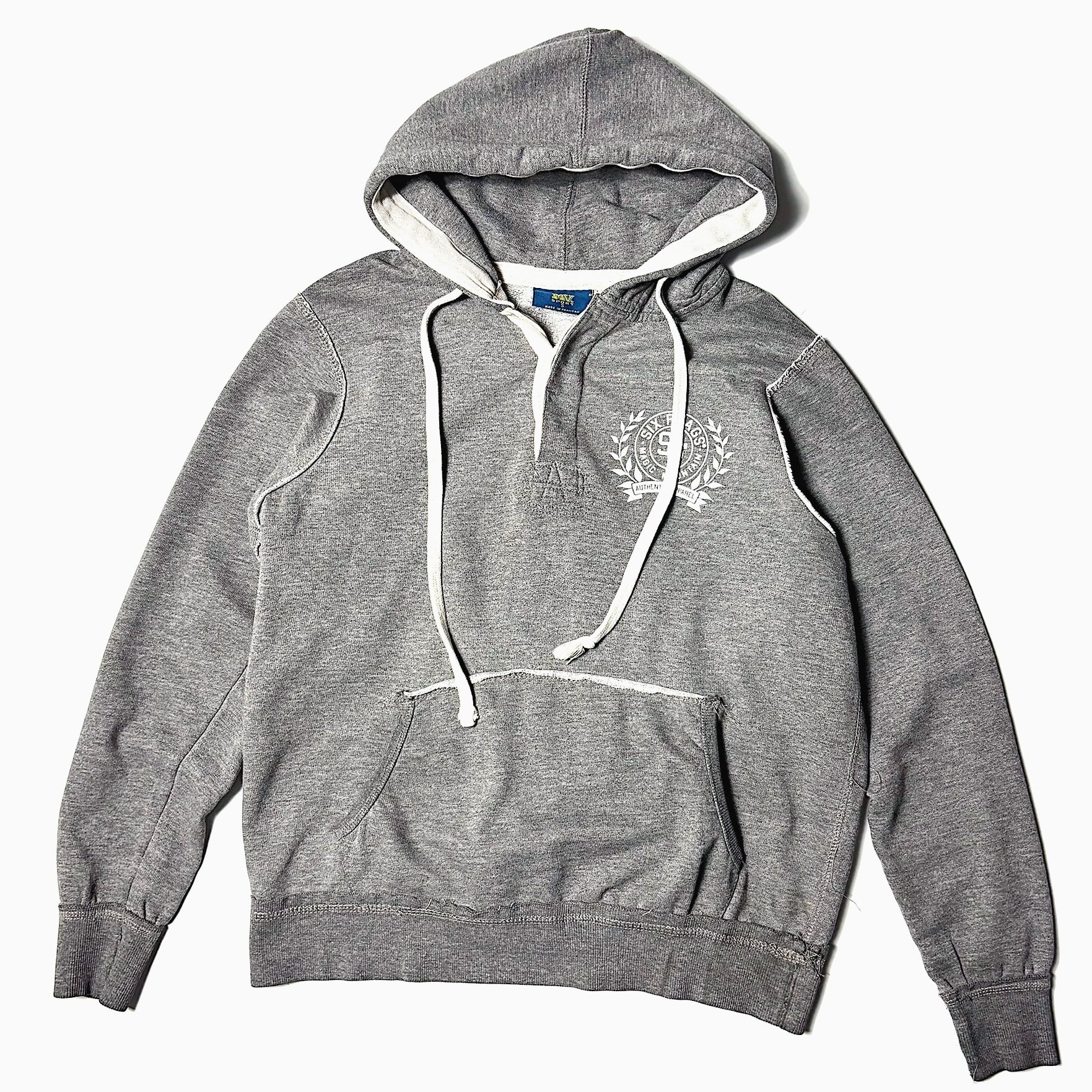 Y2K【MV SPORT】"SIX FLAGS" Raw Edge Hoodie