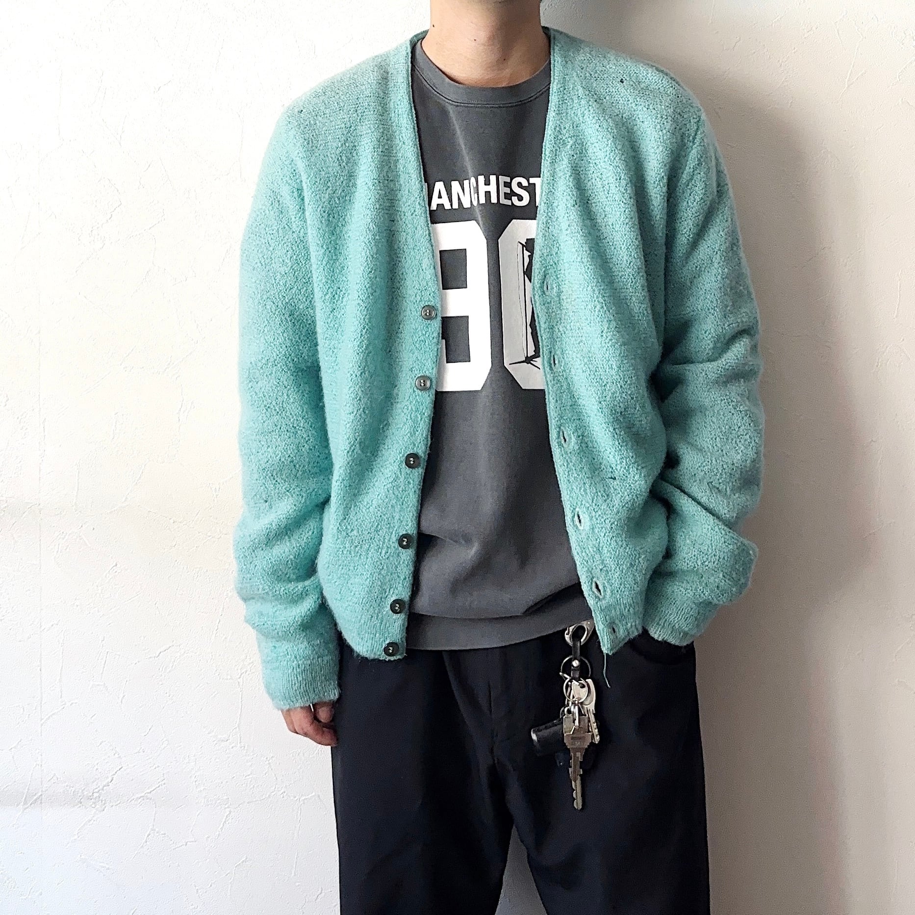 モヘアならではの高級感漂う風合いや経年変化による風合い、ダメージが非常にクールな60年代のモヘアカーディガン。