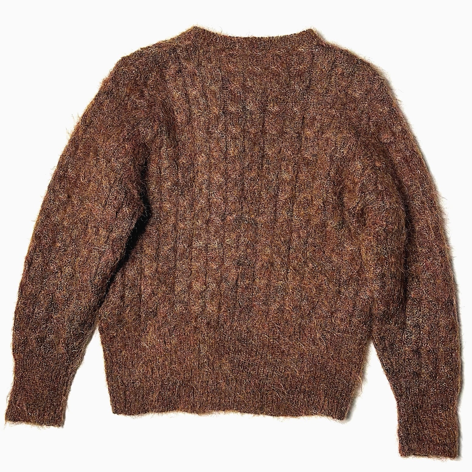 長い毛足や雰囲気抜群のカラーリングが一際目を惹く70〜80年代頃のモヘアカーディガン。
