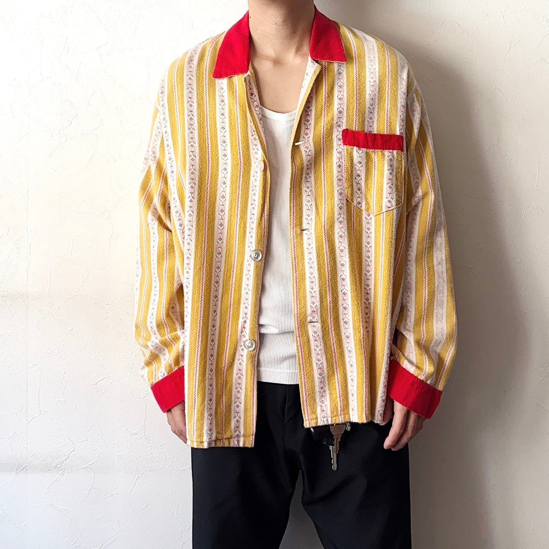 洗練された柄やカラーリング、経年変化による風合いが非常にクールな70年代のパジャマシャツ。