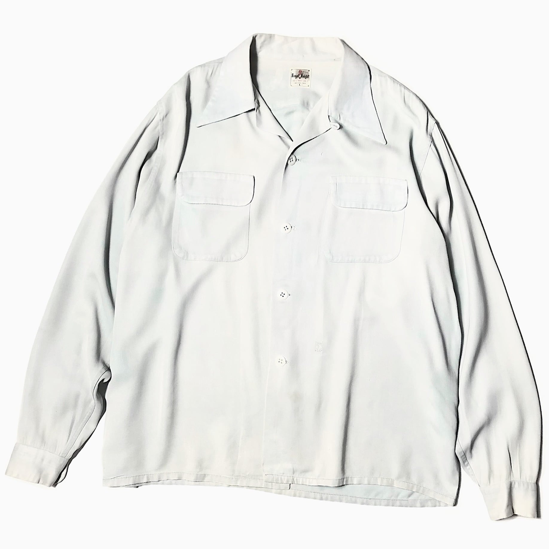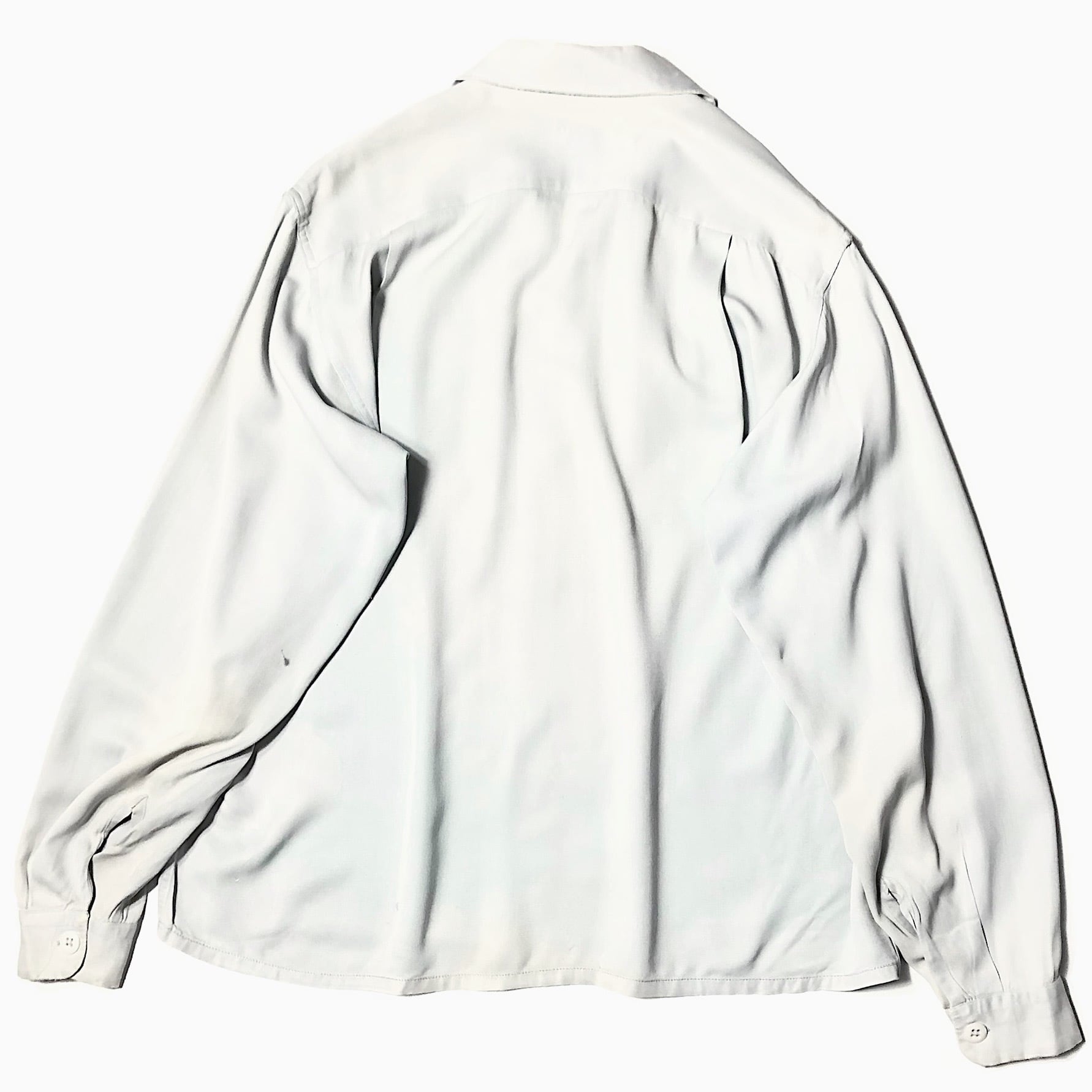 レーヨンならではの独特の光沢感やなめらかな素材感、とろみのある落ち感が魅力的な40~50年代のオープンカラーシャツ。