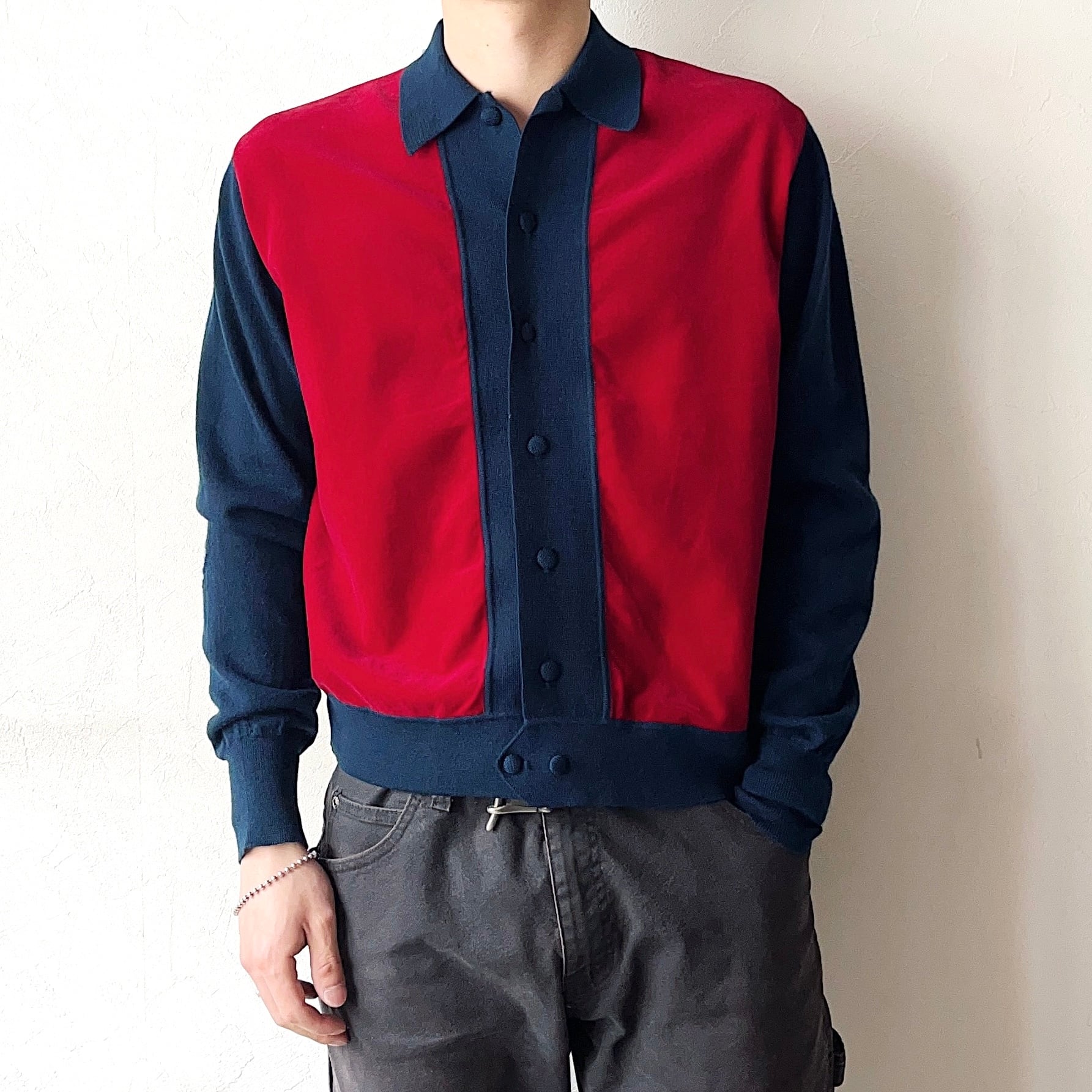 独特の光沢感を放つヴェルヴェットとの切り返しや経年変化による風合いが非常にクールな60年代頃のニットシャツ。