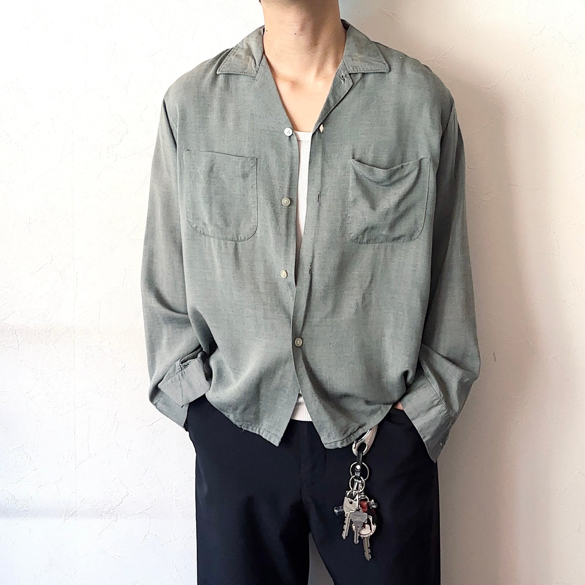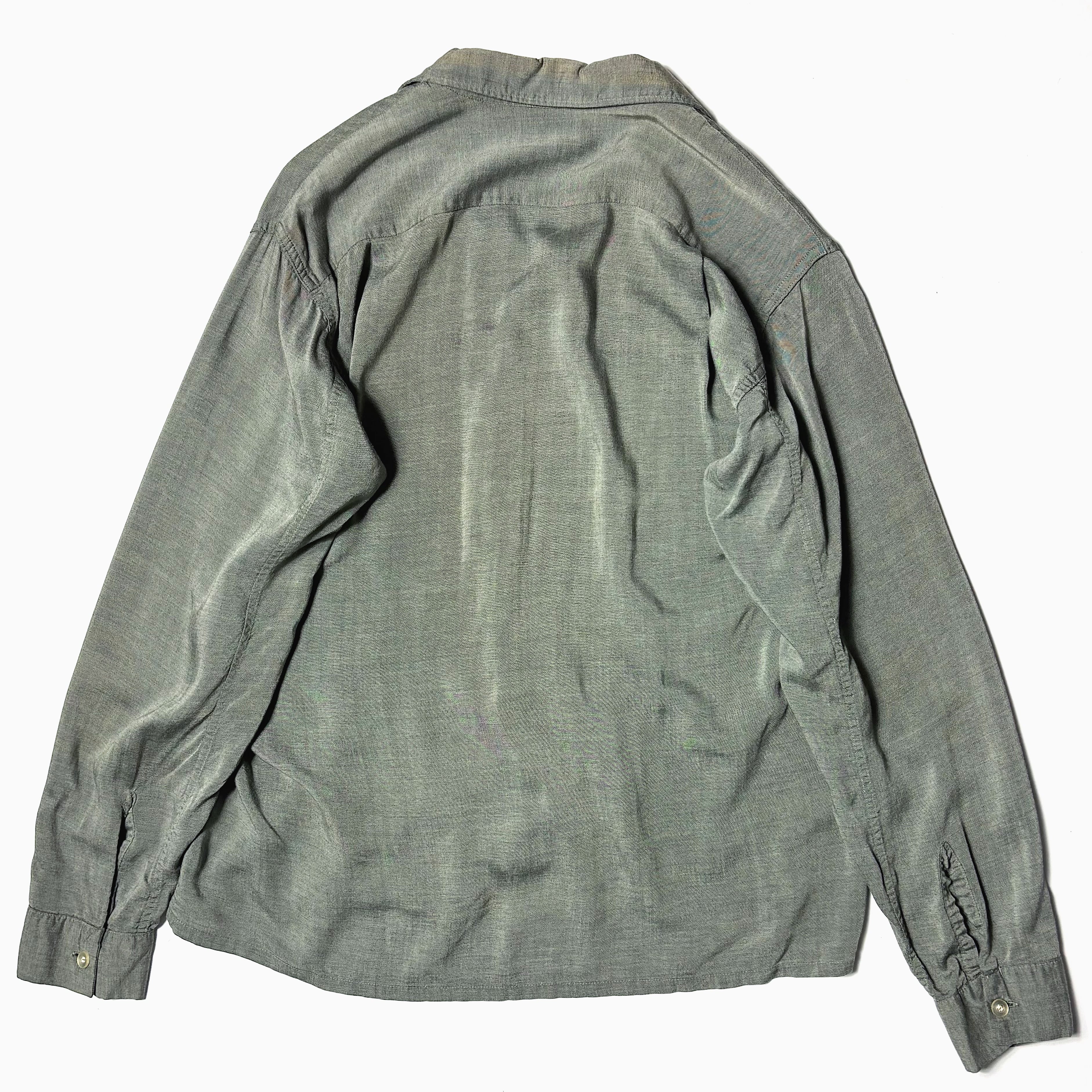 レーヨンならではの独特の光沢感やなめらかな素材感、とろみのある落ち感が魅力的な50~60年代のシャツ。