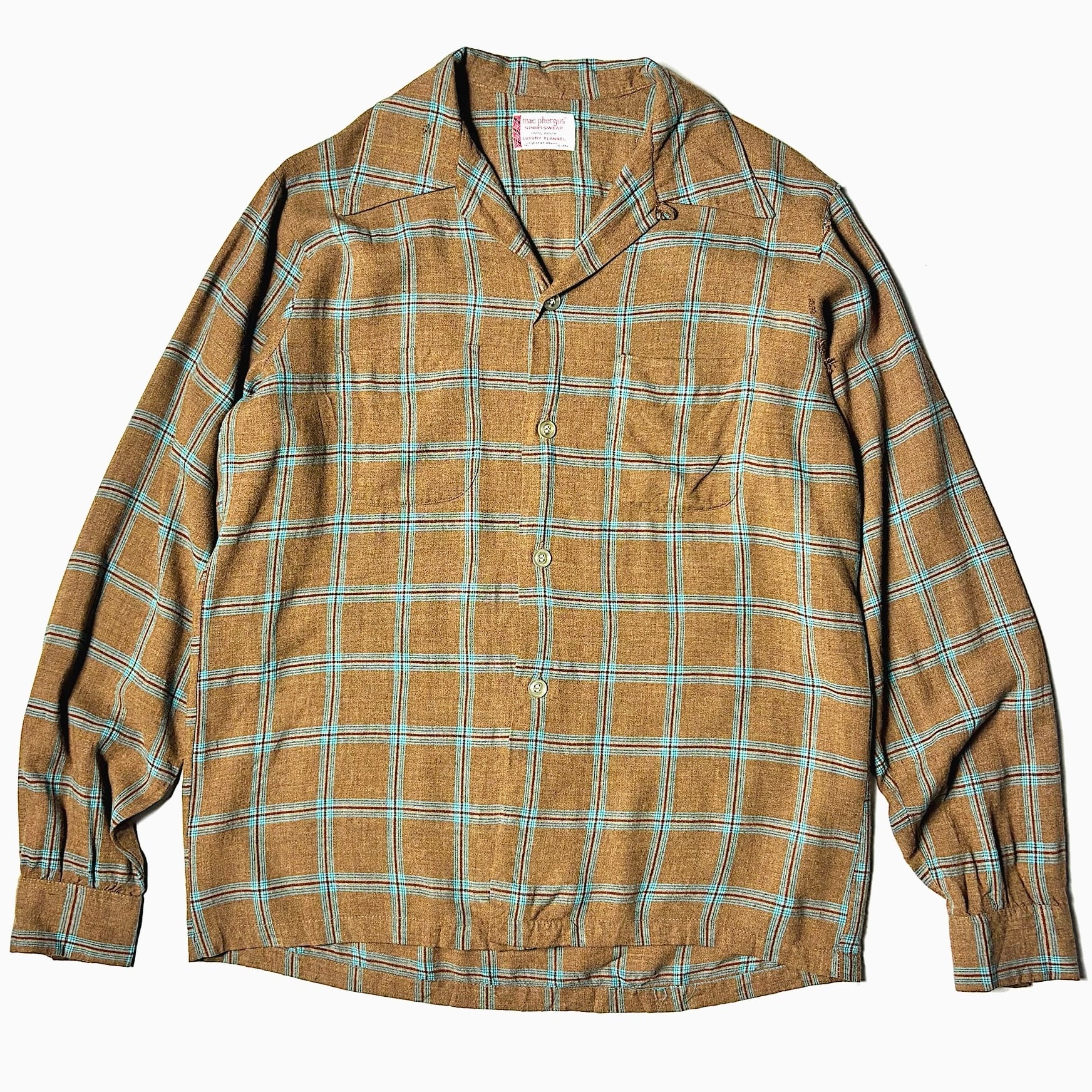 Vintage 60's【mac phergus】Open Collar Rayon Check Shirt