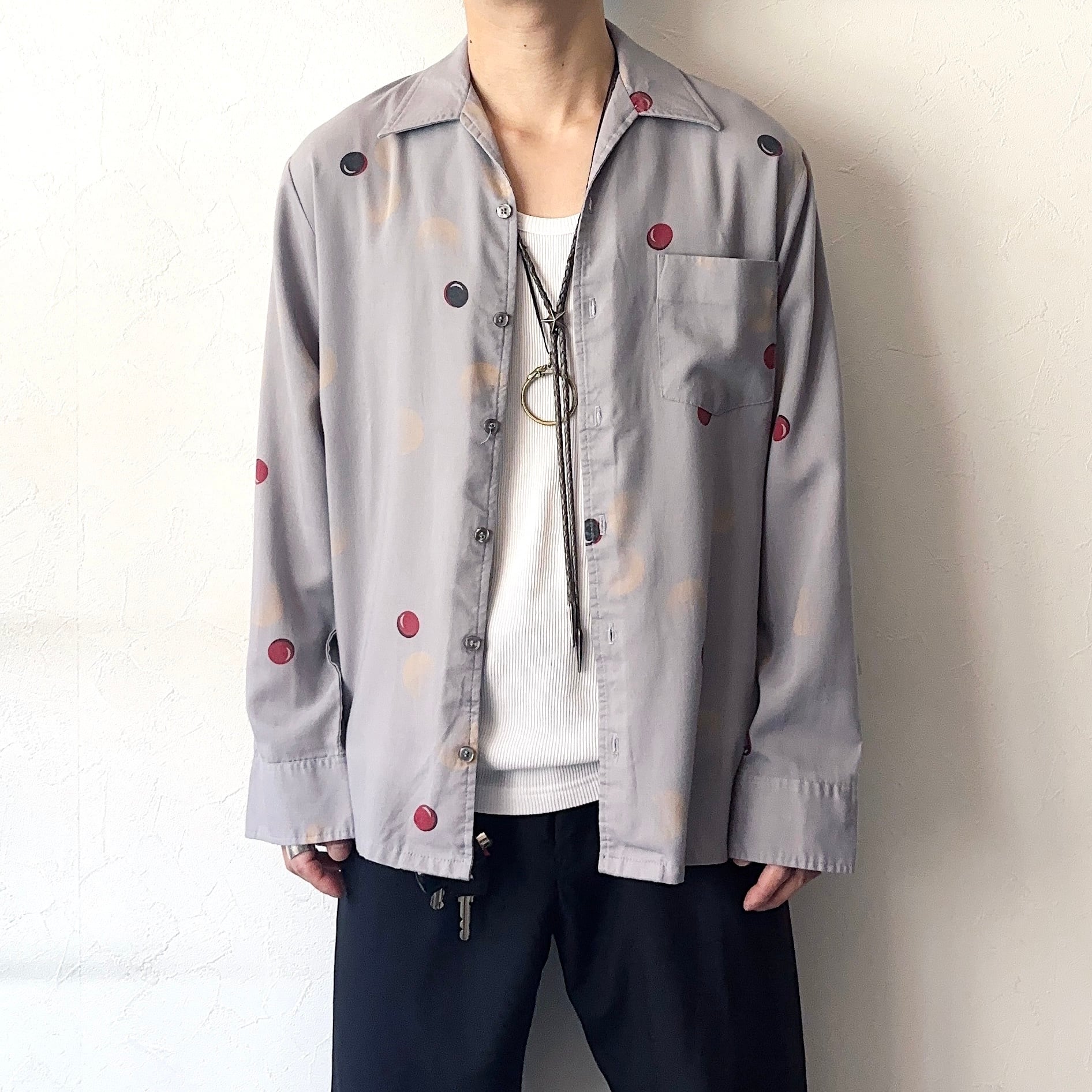 一際目を惹くドット柄が非常にクールなシャツ。
