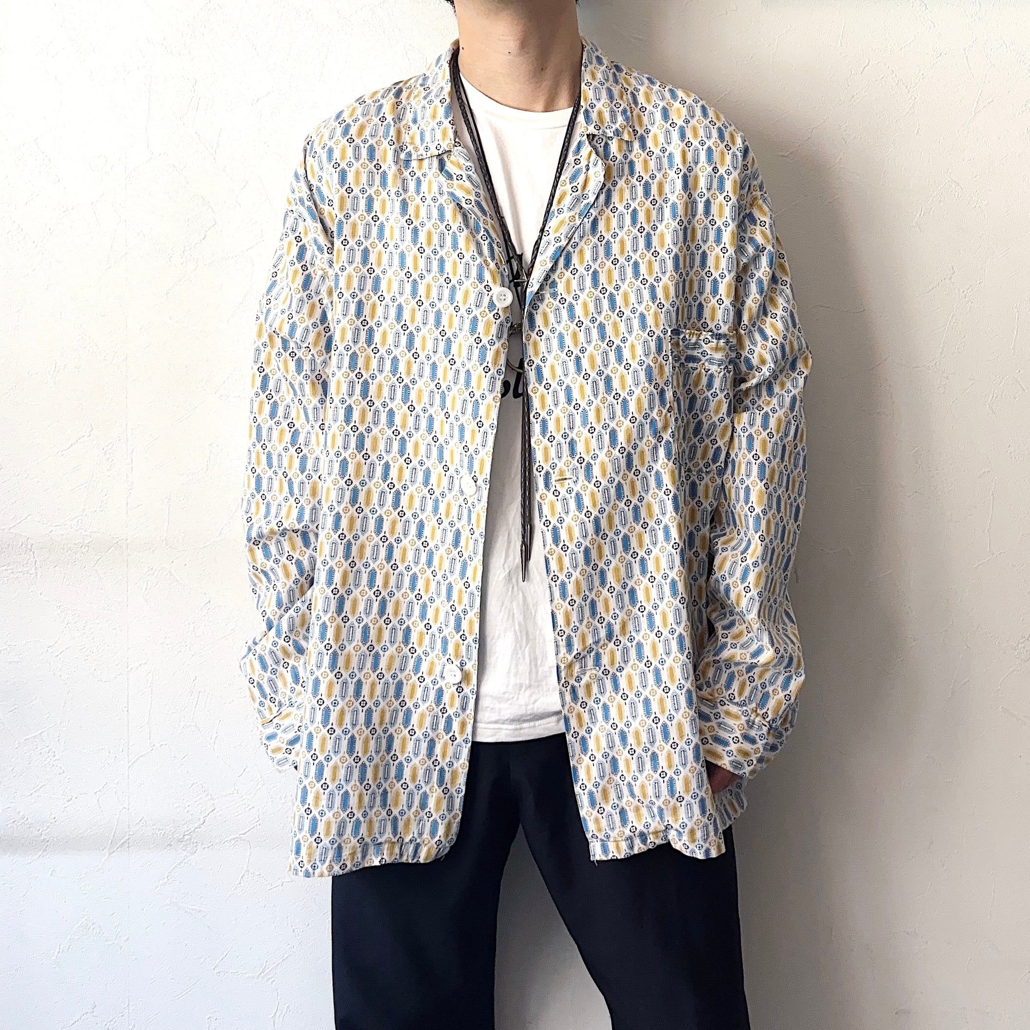 洗練された総柄やカラーが非常にクールな60~70年代頃のパジャマシャツ。