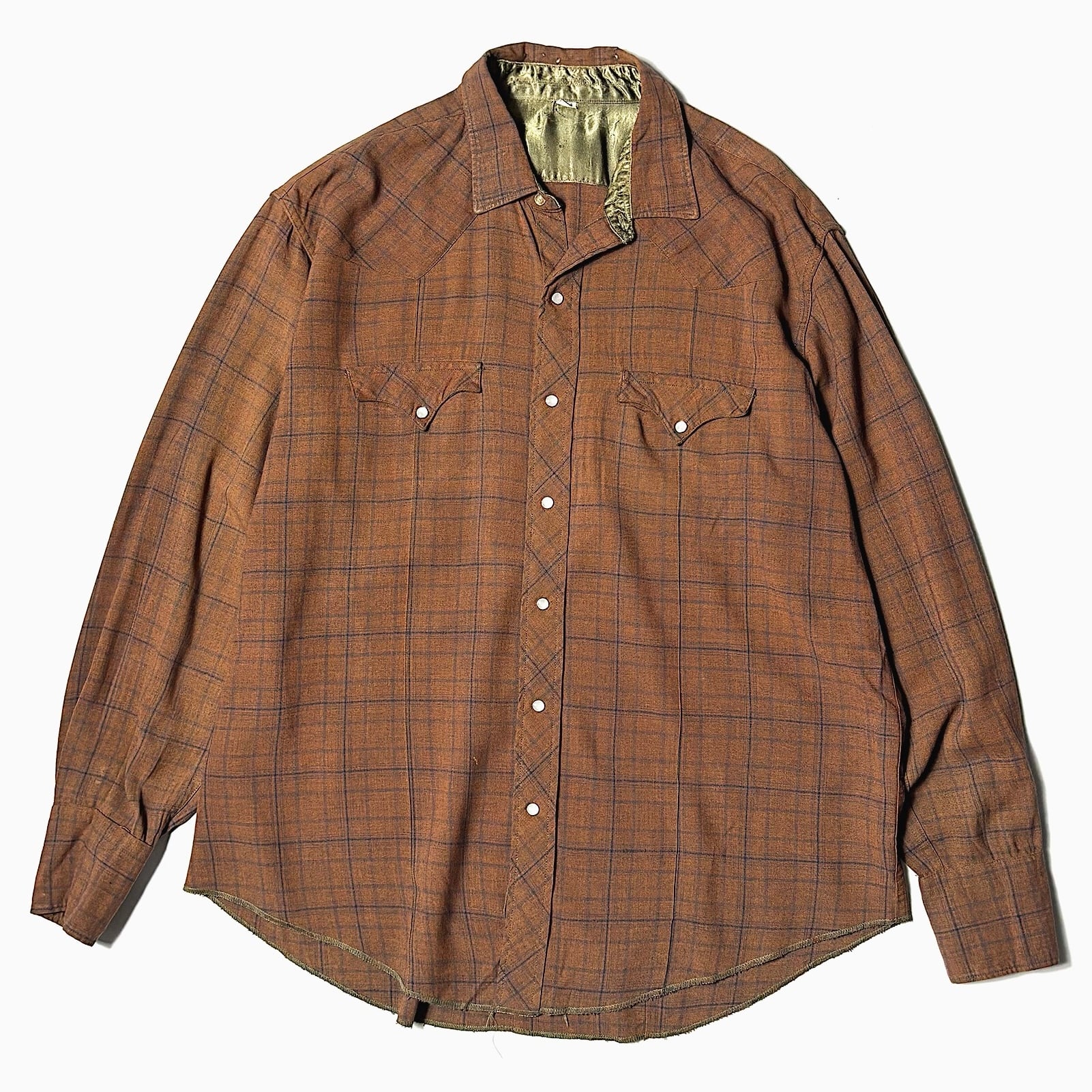 レーヨンならではの独特の光沢感やなめらかな素材感、とろみのある落ち感が魅力的な60年代頃のウエスタンシャツ。