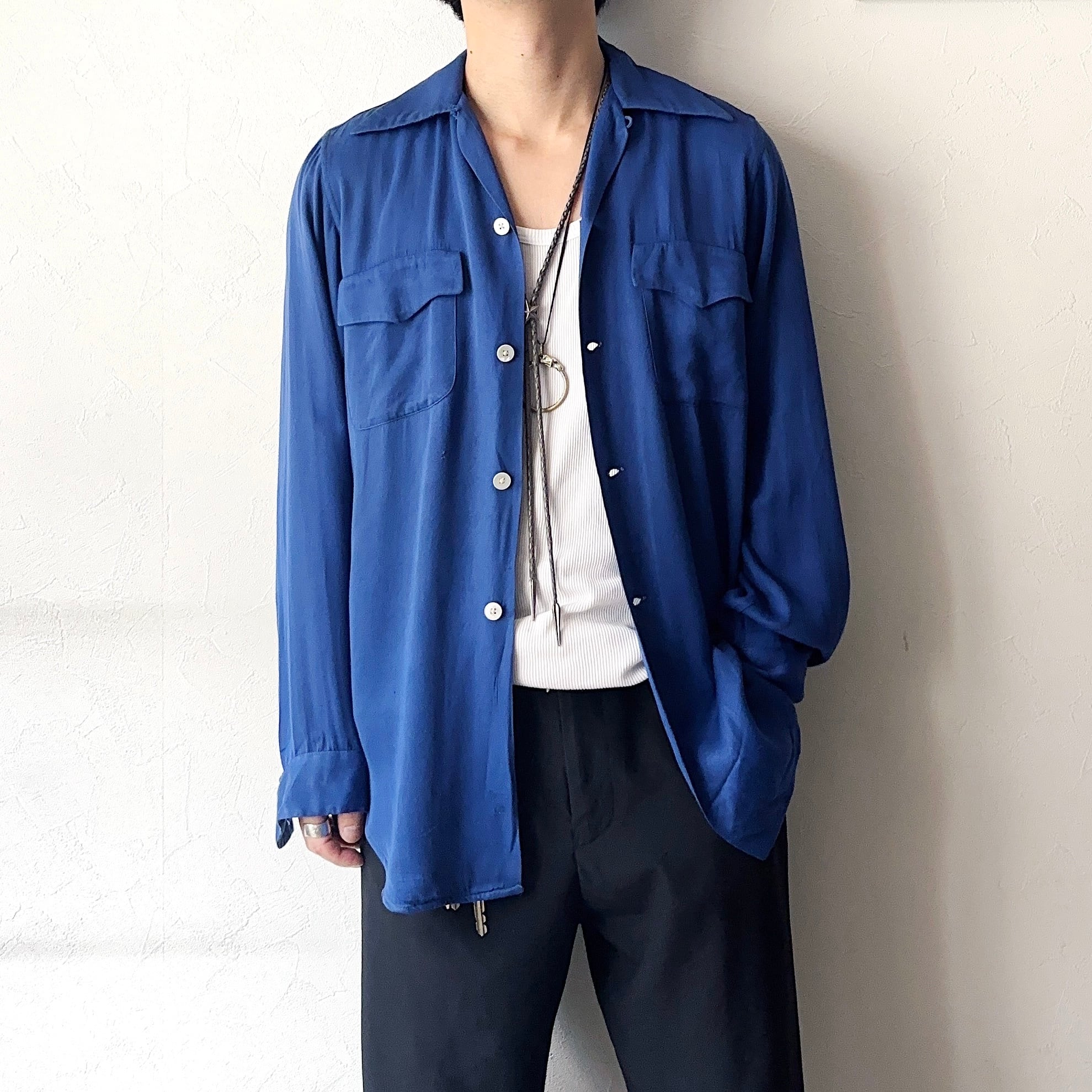 レーヨンならではの独特の光沢感やなめらかな素材感、とろみのある落ち感が魅力的な50年代のオープンカラーシャツ。