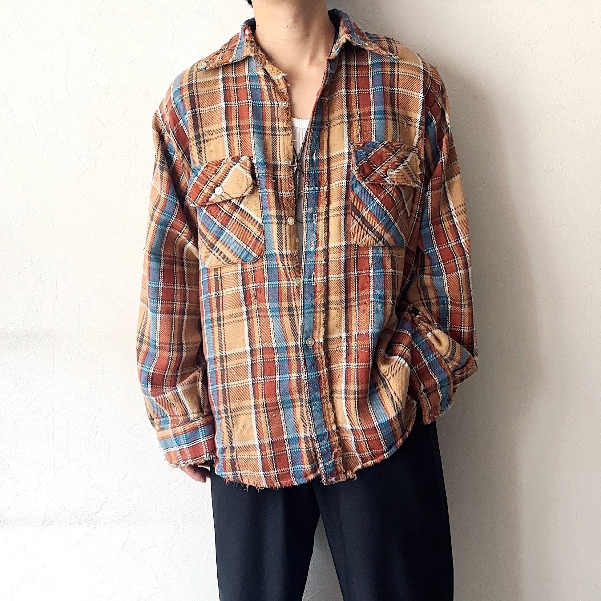 経年変化による風合いやダメージが圧倒的な存在感を放つチェックシャツ。