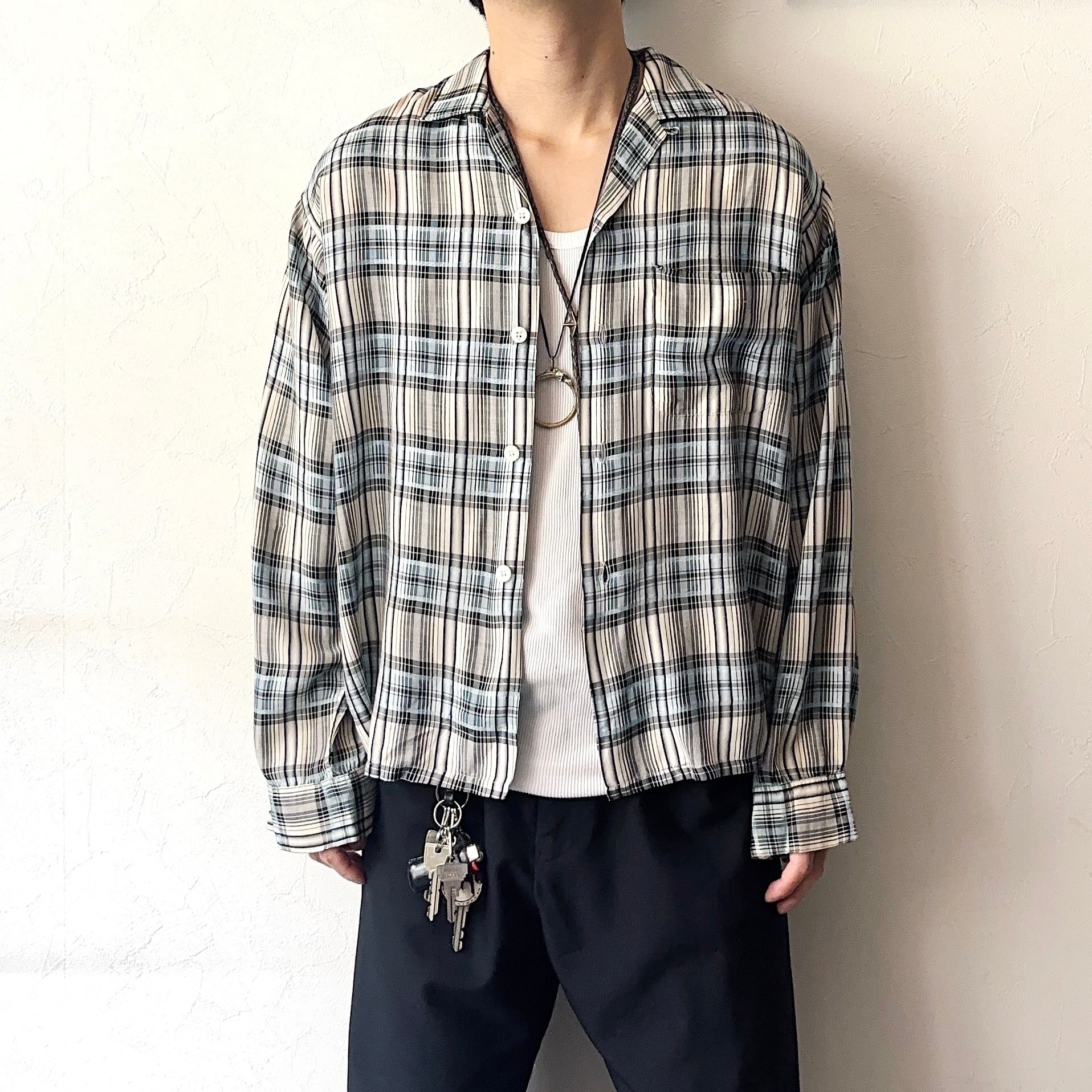 レーヨンならではの独特の光沢感やなめらかな素材感が魅力的な60年代のオープンカラーシャツ。